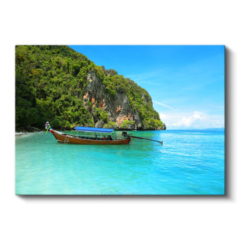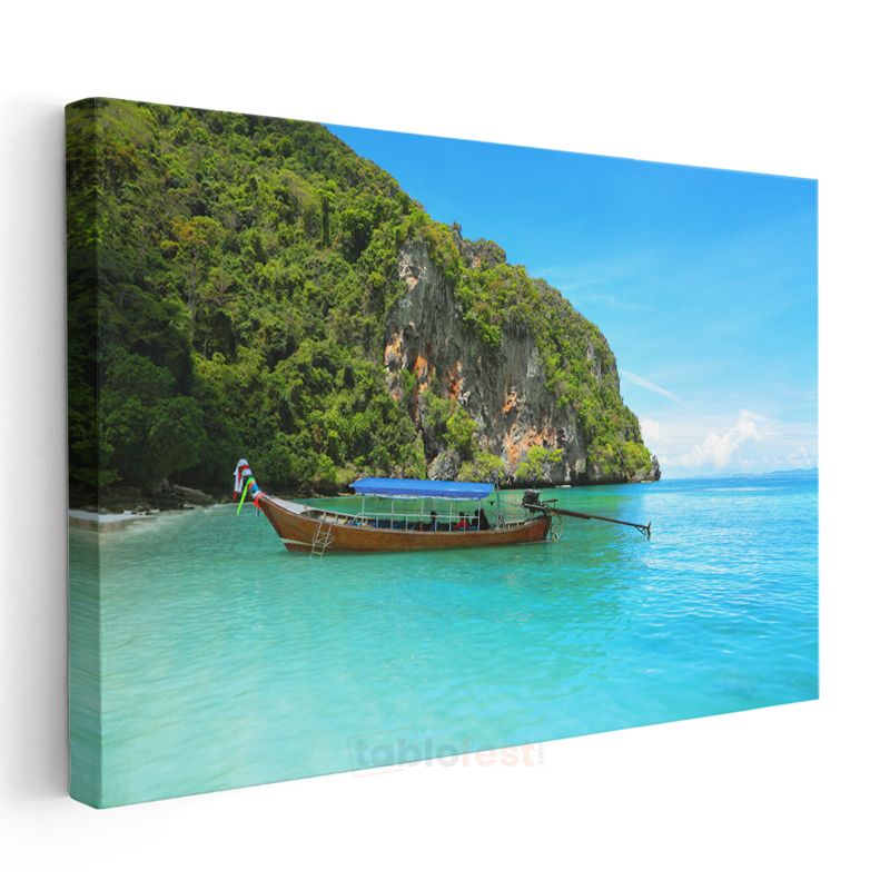 Cennet Koyları - Turkuaz Suda Yüzen Tekne Kanvas Tablo