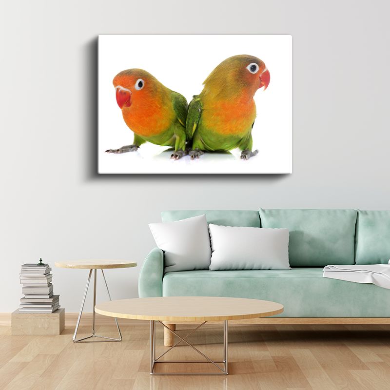 Cennet Papağanları - Turuncu Yüzlü İkizlerin Duruşu Kanvas Tablo