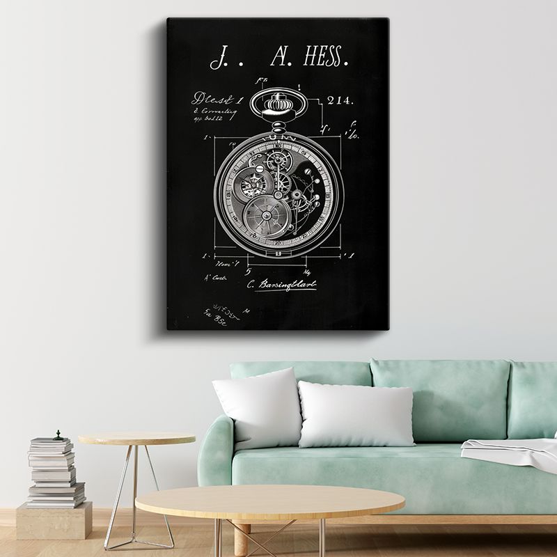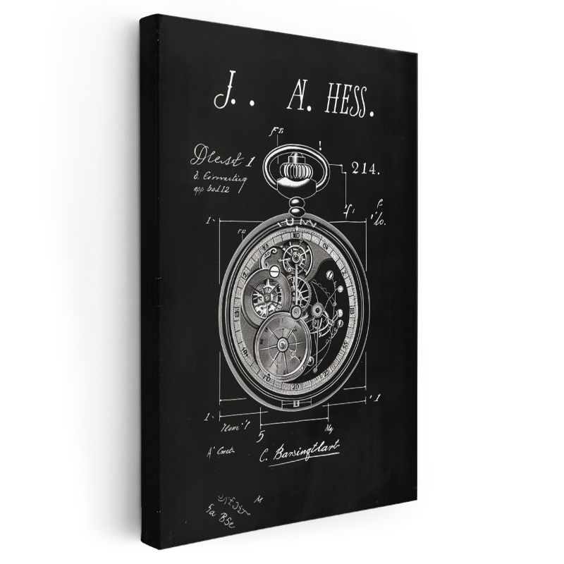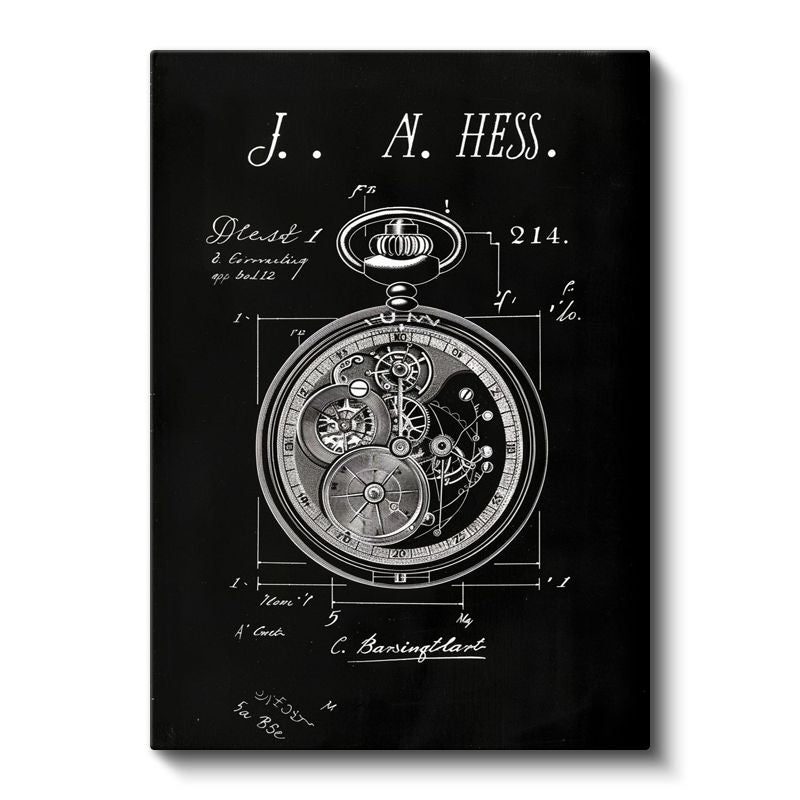 Cep Saati Patent Çizimi - J.A. Hess İmzalı Mekanizma Kanvas Tablo