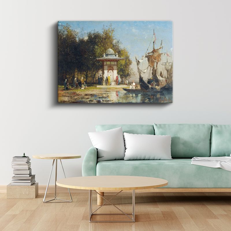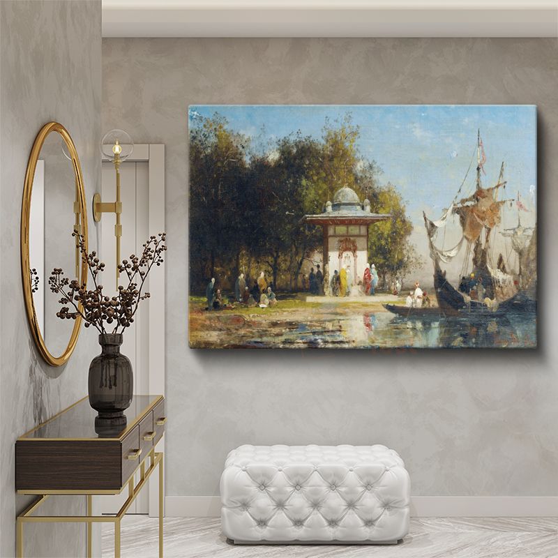 Çeşme Başı - Osmanlı Deniz Kıyısı Manzarası Kanvas Tablo