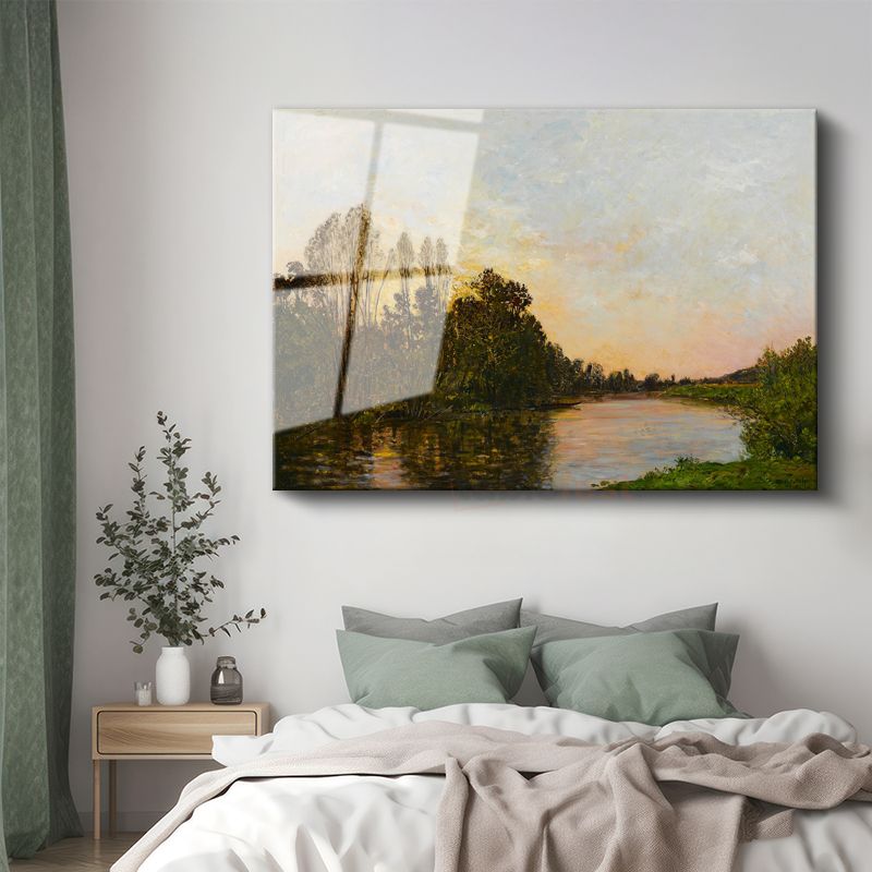 Charles-François Daubigny - Nehir Kıyısında Günbatımı Cam Tablo