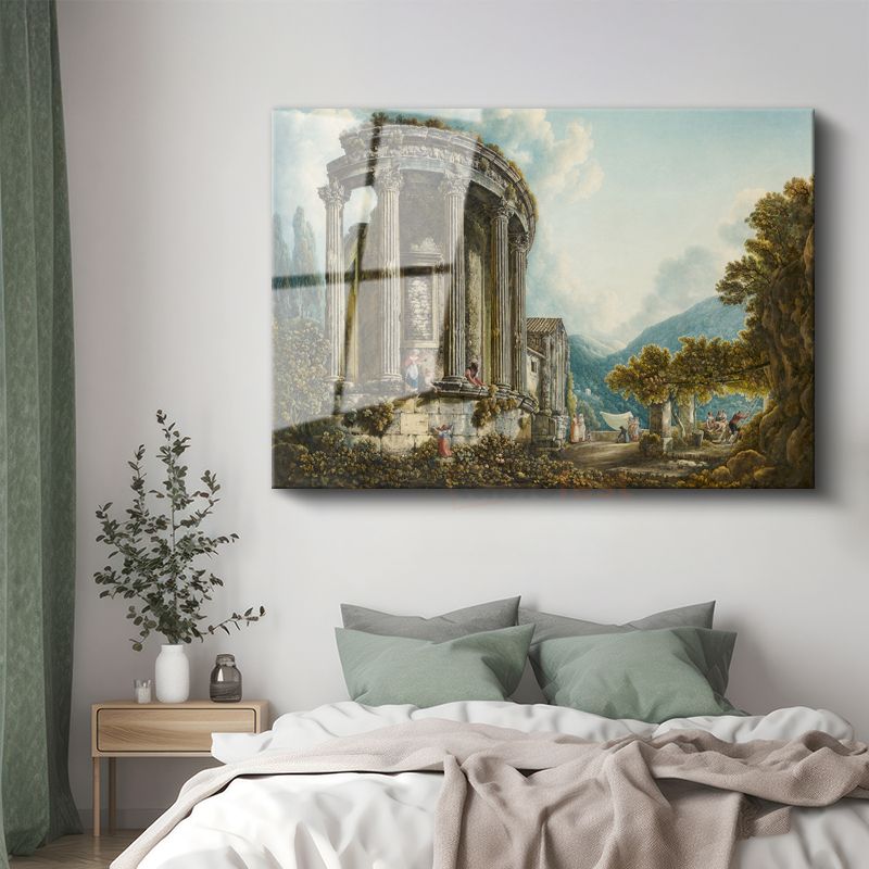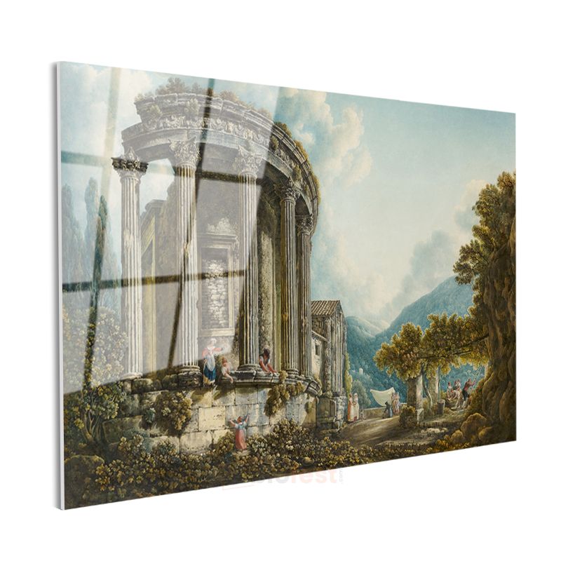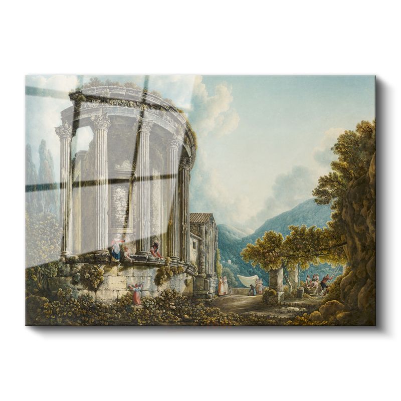 Charles-Louis Clérisseau - Antik Tapınak Manzarası Cam Tablo