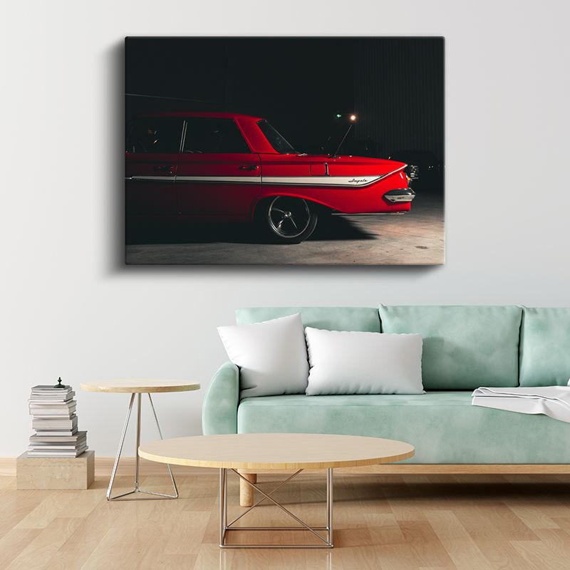 Chevrolet Impala - Kırmızı Klasik Amerikan Arabası Kanvas Tablo