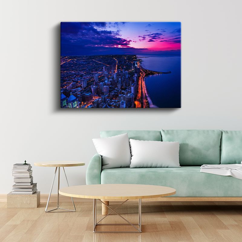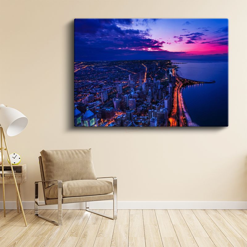 Chicago Manzarası - Gece Işıklarında Şehir Kanvas Tablo