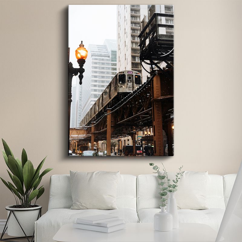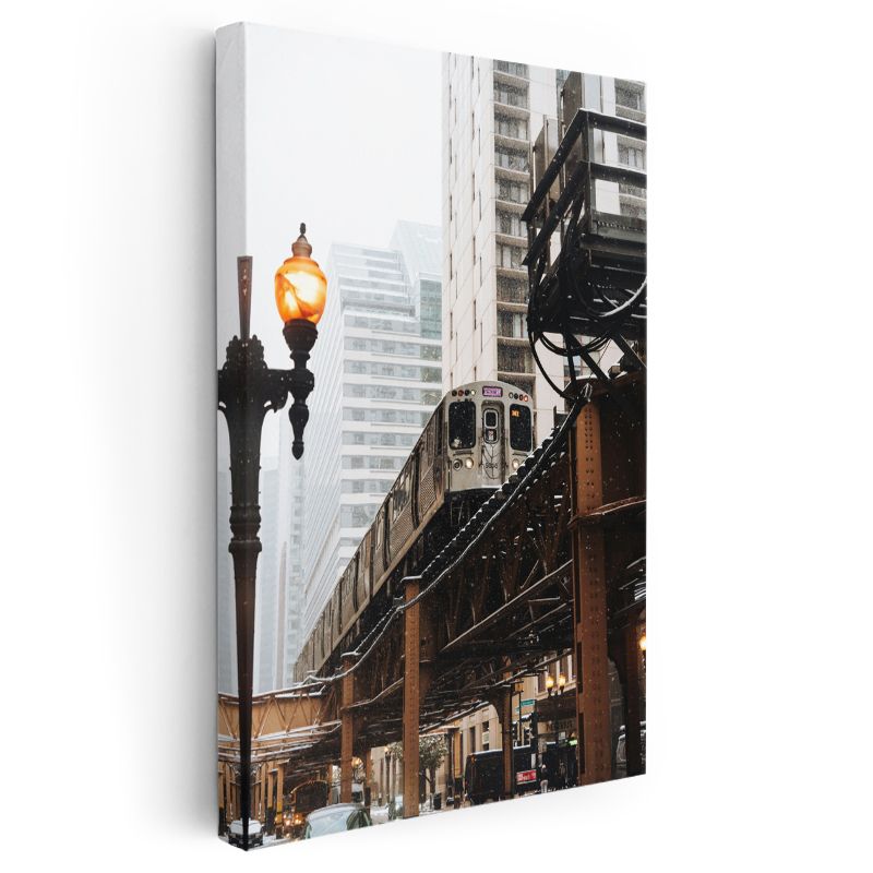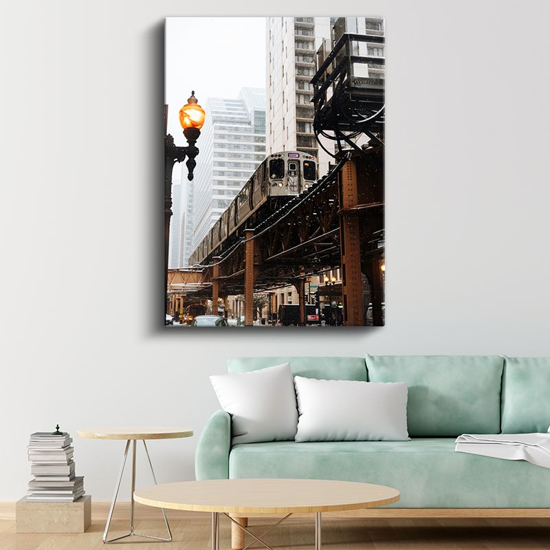 Chicago Metrosu - Şehir Manzarasında Nostaljik Raylı Sistem Kanvas Tablo