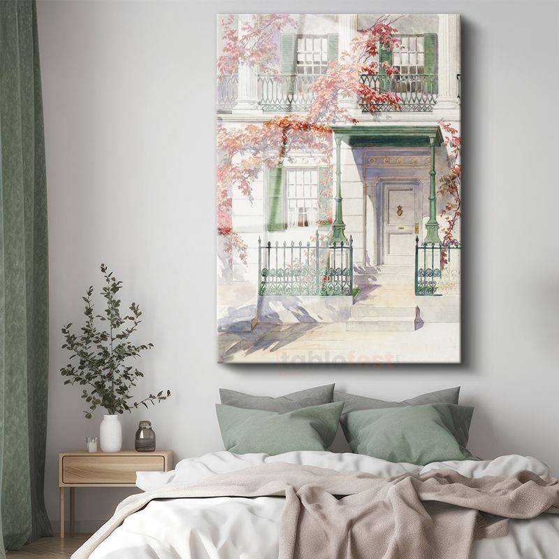 Childe Hassam - Sonbahar Evi Cam Tablo