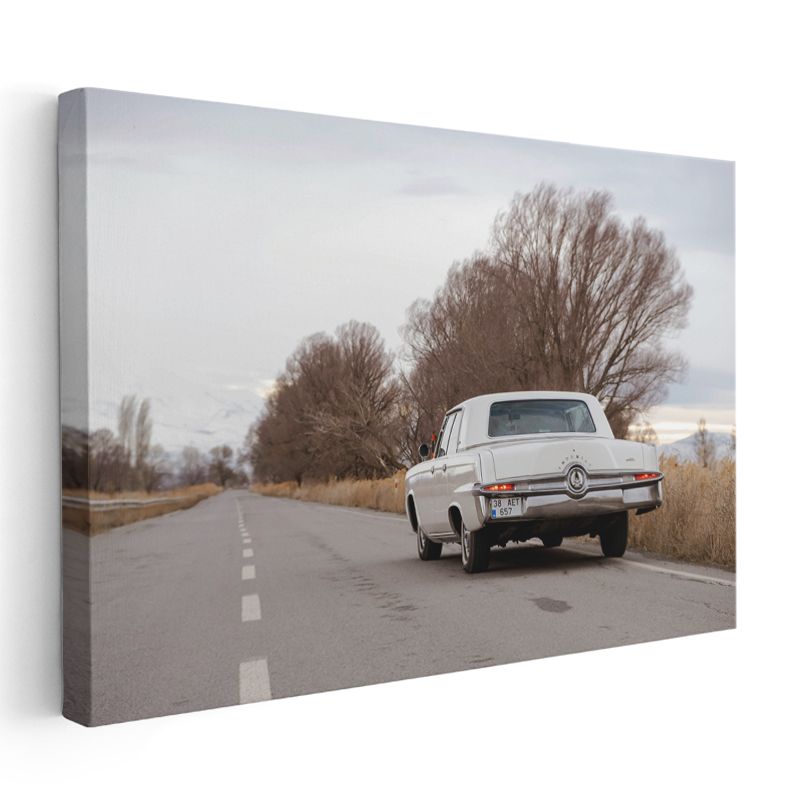 Chrysler Imperial - Kırsal Yolda Nostaljik Beyaz Sedan Kanvas Tablo