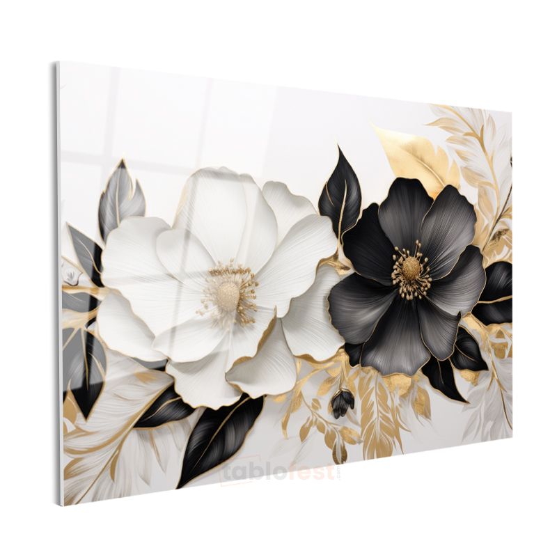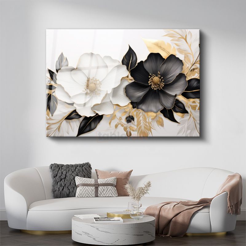 Çiçek Ağacı - Tekstürlü Pembe Beyaz Çiçekli Dal Cam Tablo