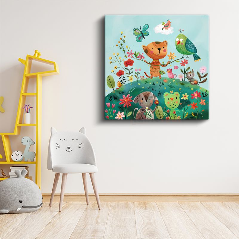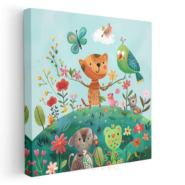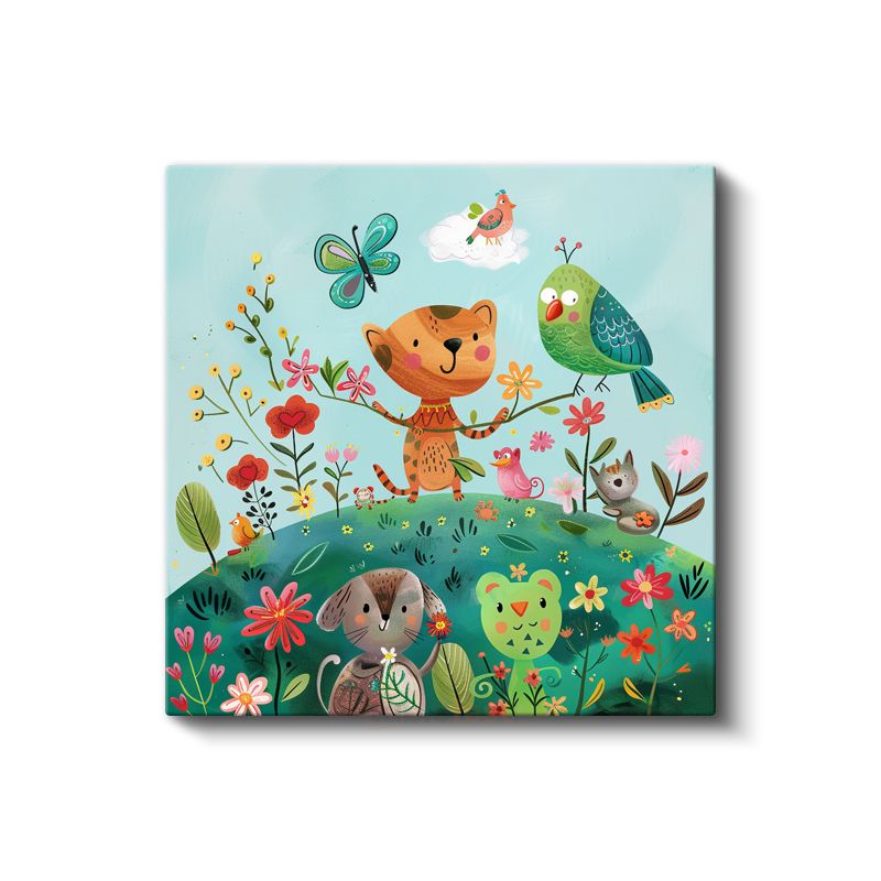 Çiçek Bahçesi - Sevimli Hayvan Dostları Kanvas Tablo