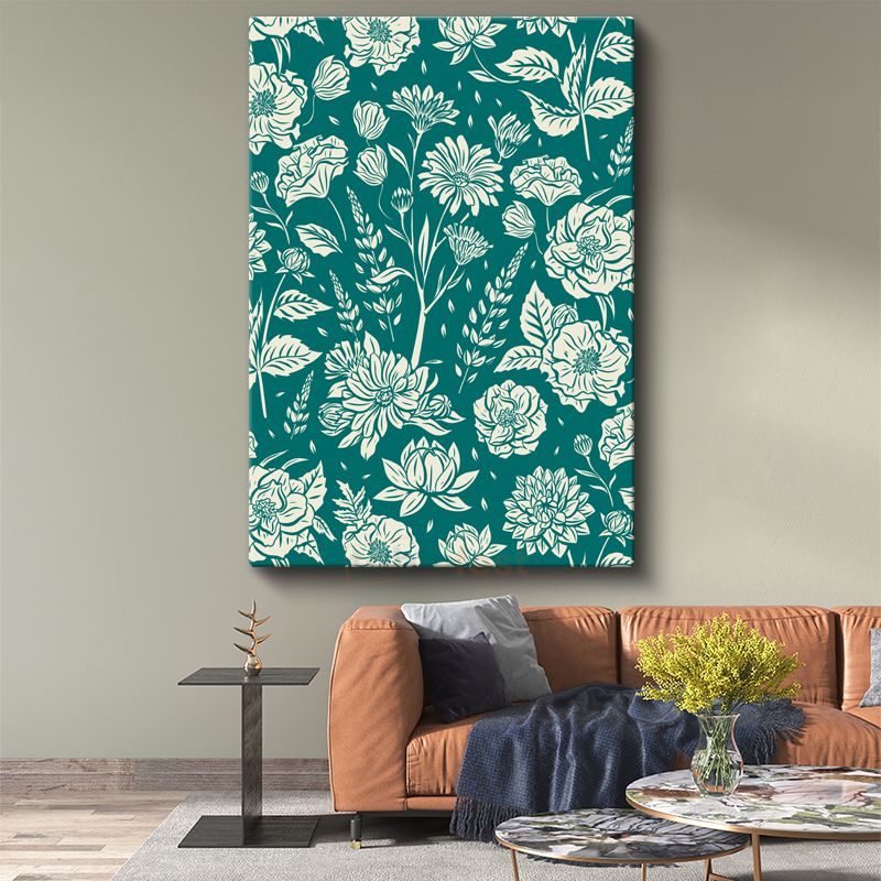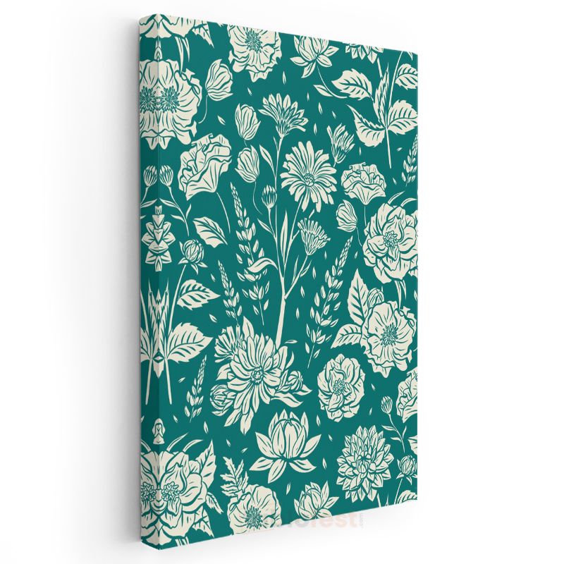 Çiçek Dansı - Turkuaz Zemin Botanik İllüstrasyon Kanvas Tablo