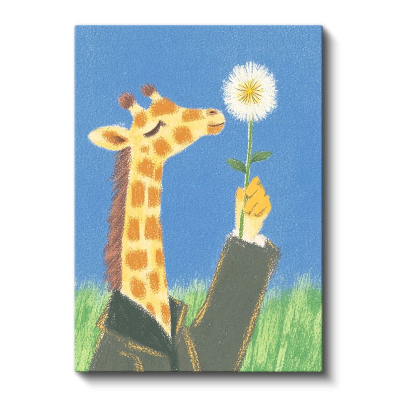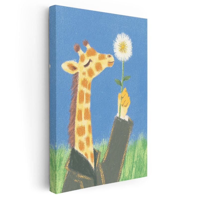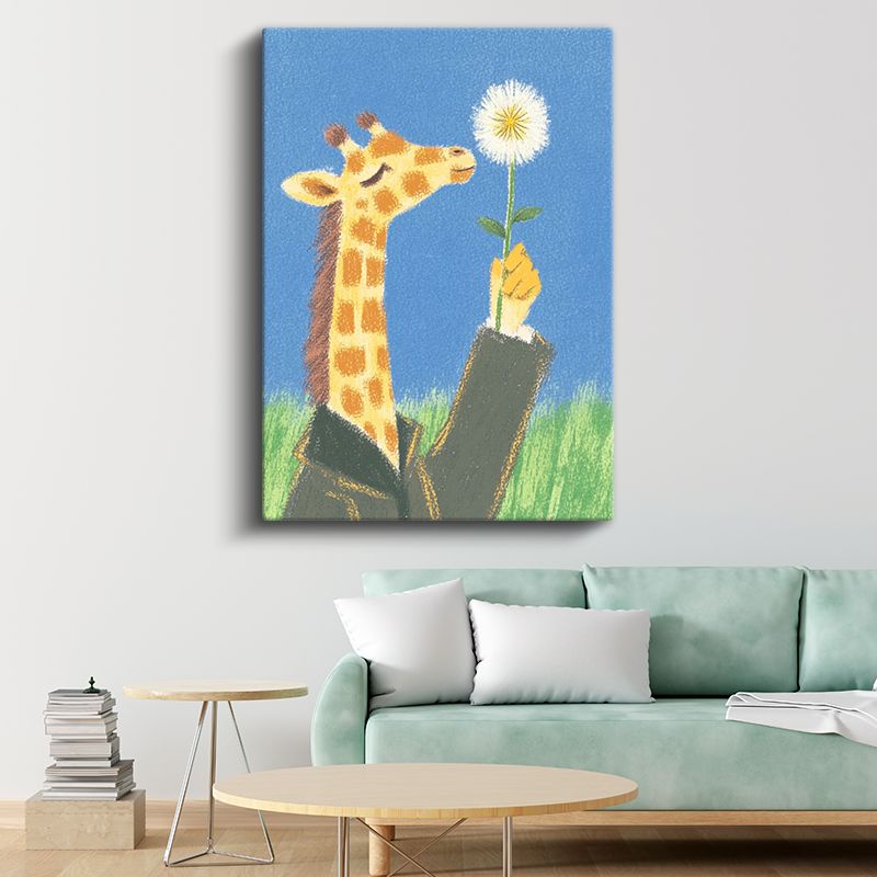 Çiçek Koklayan Zürafa - Mavi Gökyüzü Altında Sevimli Dostumuz Kanvas Tablo