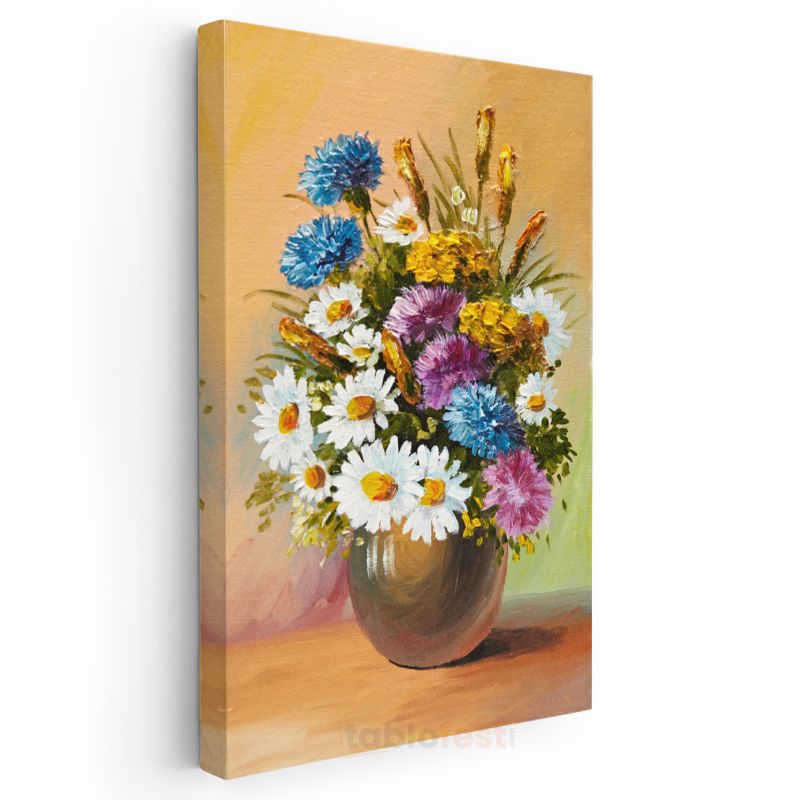 Çiçek Senfonisi - Renkli Papatya ve Yabani Çiçekler Kanvas Tablo