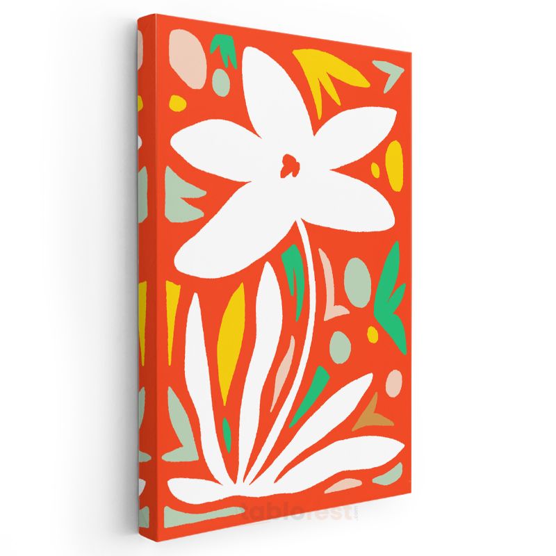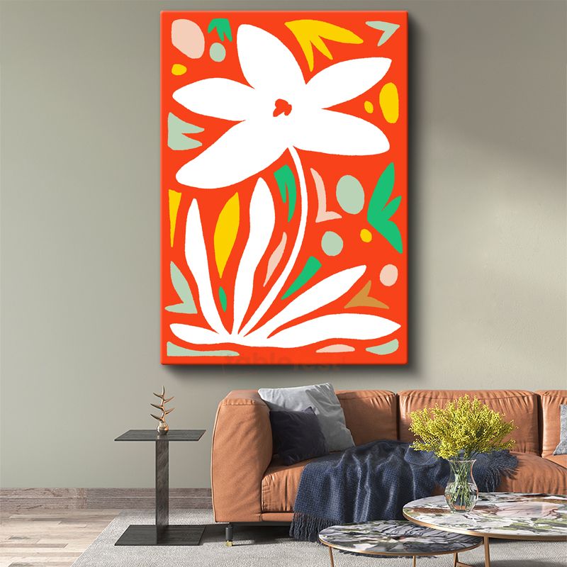 Çiçek Soyutlaması - Turuncu Zeminde Beyaz Motifler Kanvas Tablo