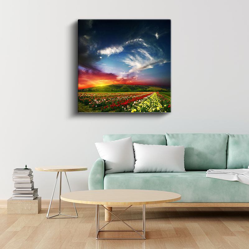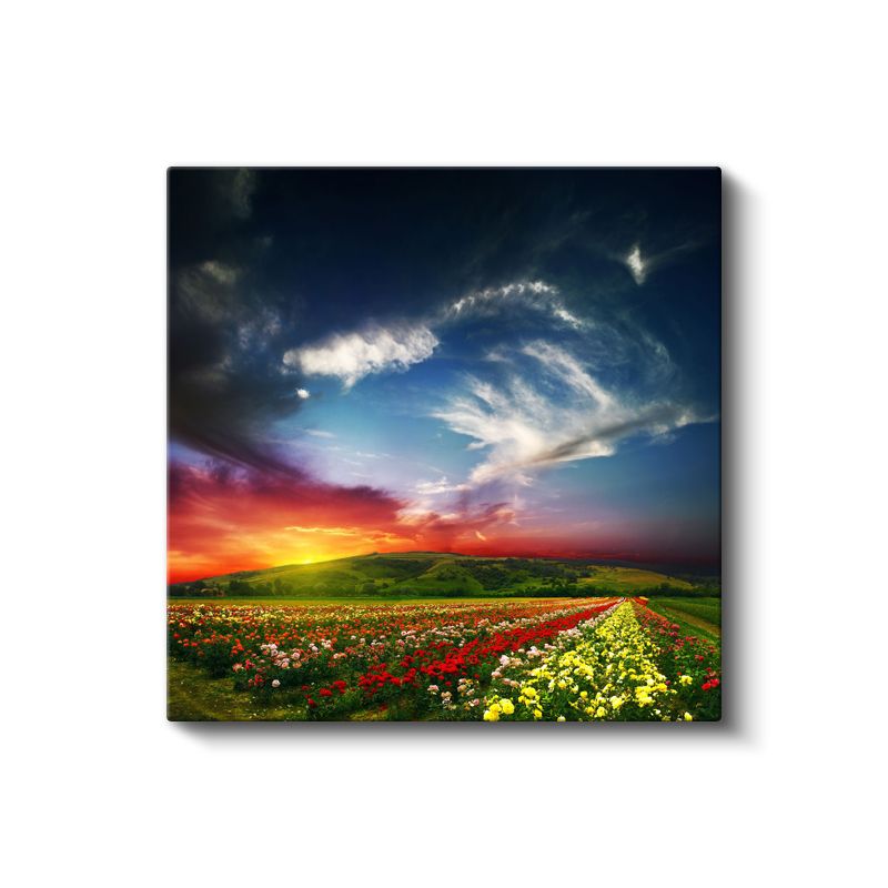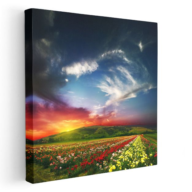 Çiçek Tarlası Manzarası - Gün Batımında Renkli Çiçekler Kanvas Tablo