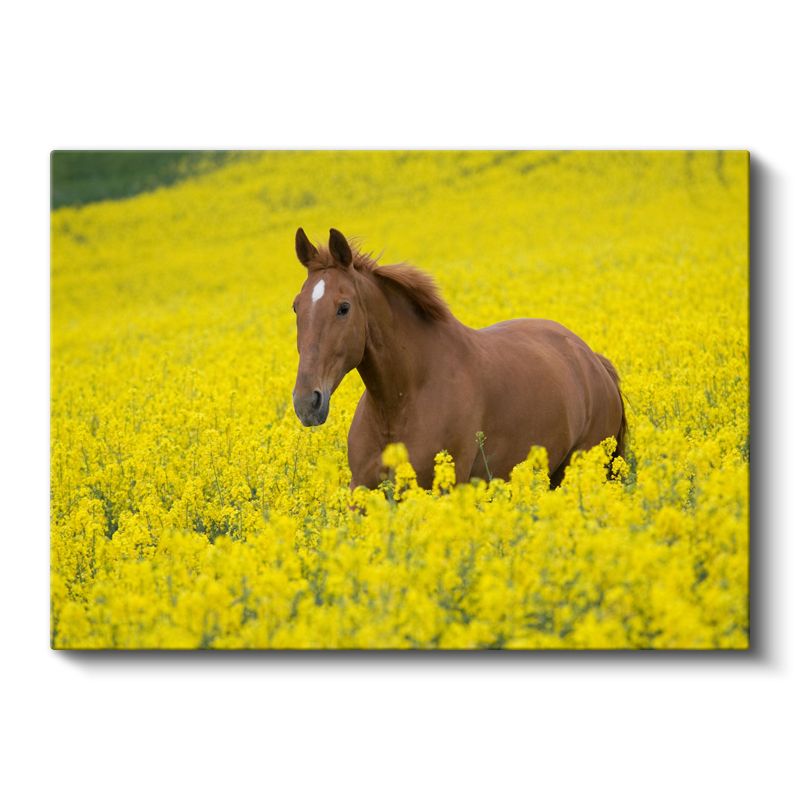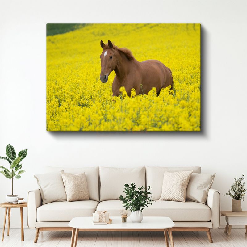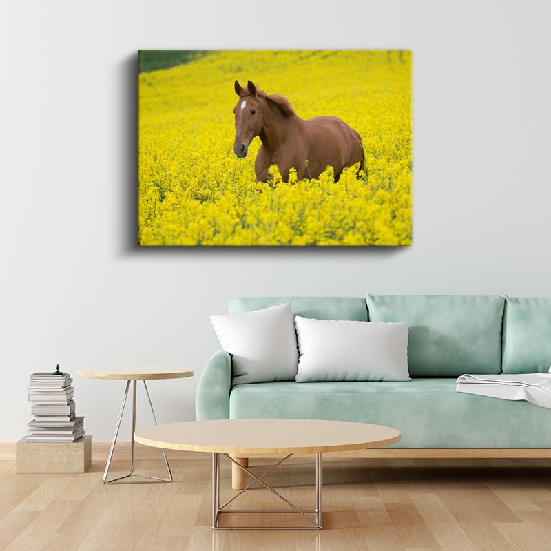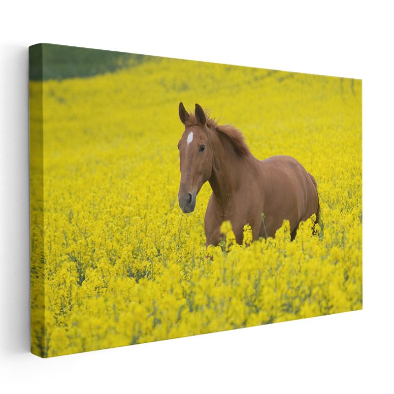 Çiçek Tarlasında At - Sarı Güzellikler Arasında Kanvas Tablo