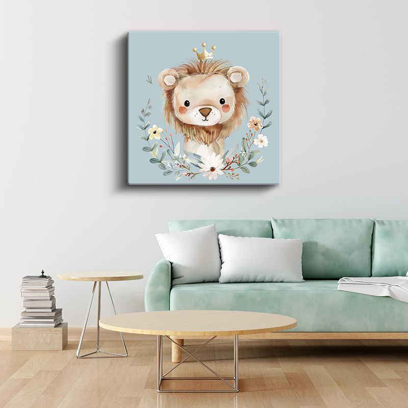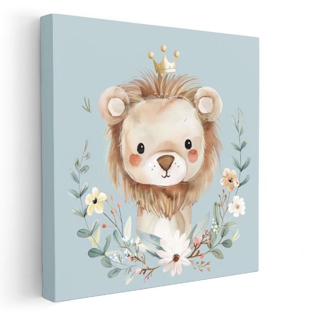 Çiçekli Aslan - Taçlı Orman Kralı Kanvas Tablo