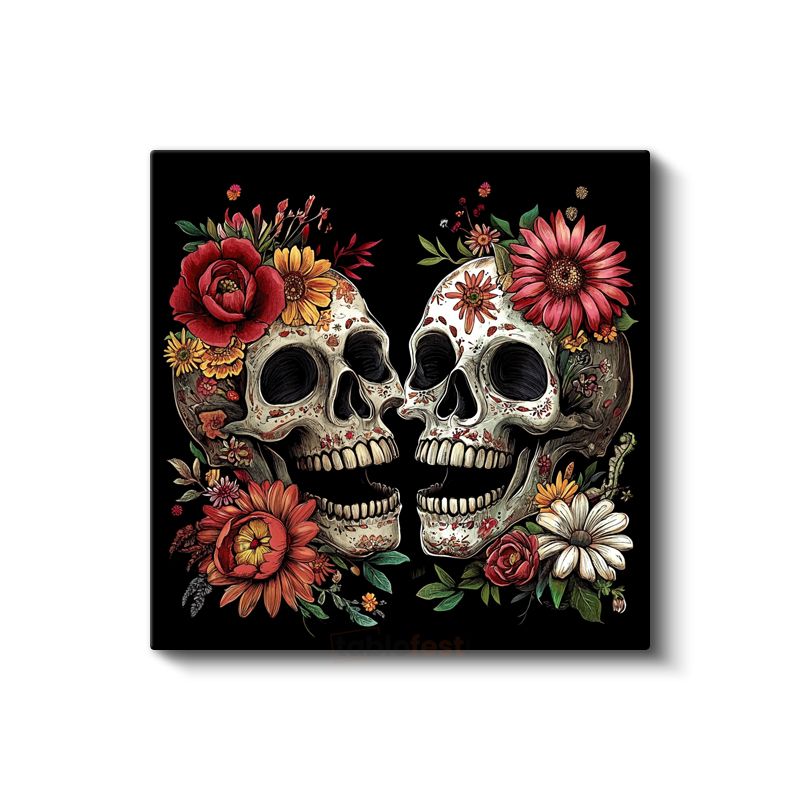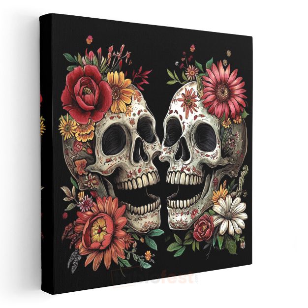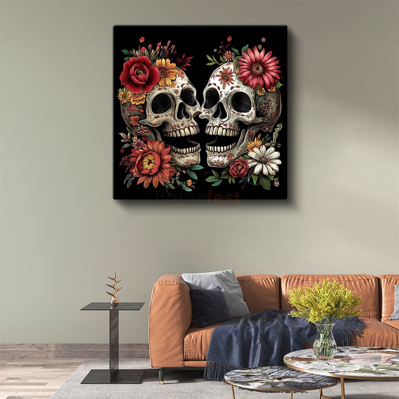 Çiçekli Kafatasları - Meksika Kültürü Esintisi Kanvas Tablo