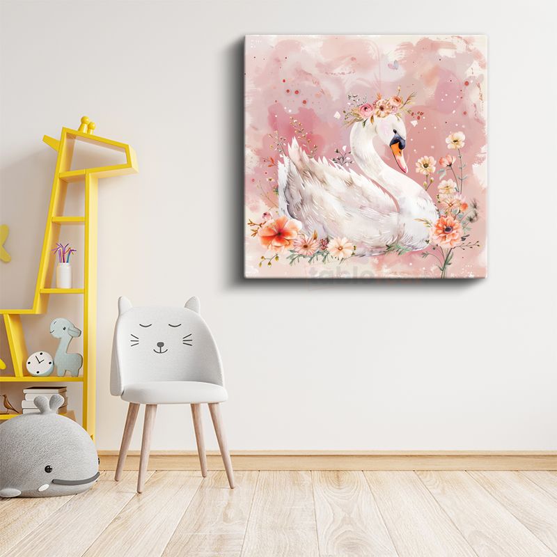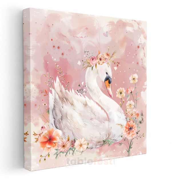 Çiçekli Kuğu - Zarif Dostumuz Kanvas Tablo