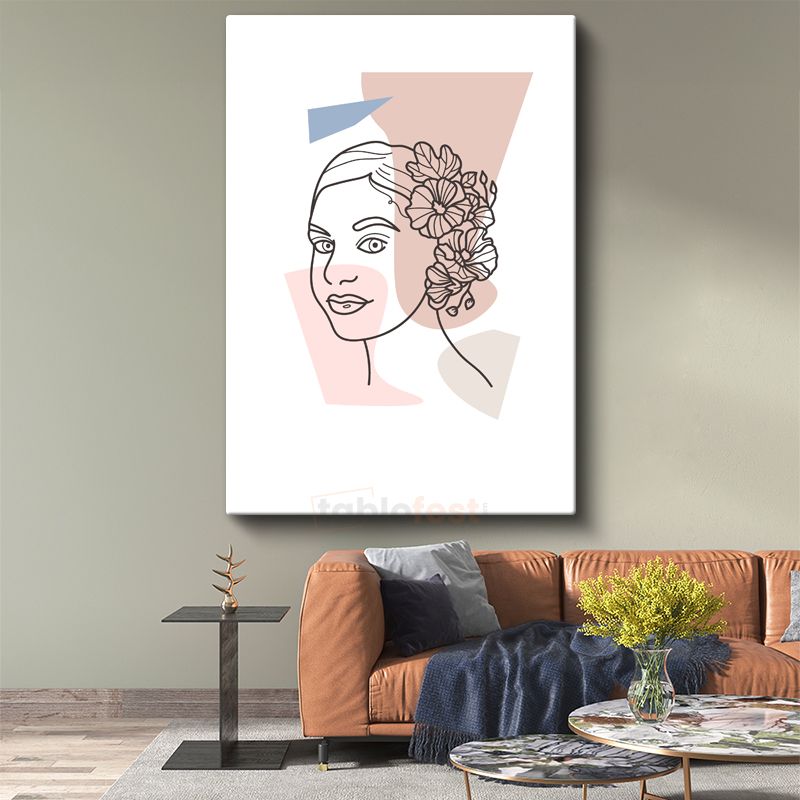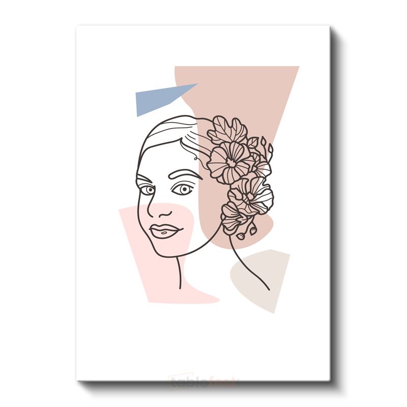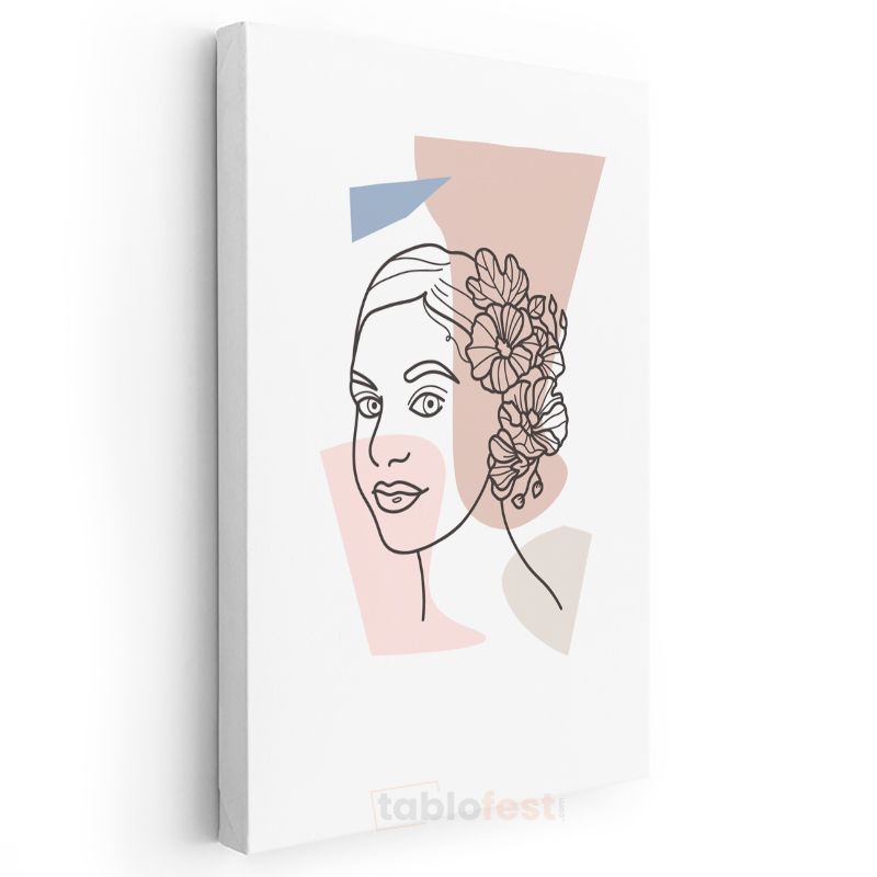 Çiçekli Portre - Minimalist Kadın Yüzü Kanvas Tablo
