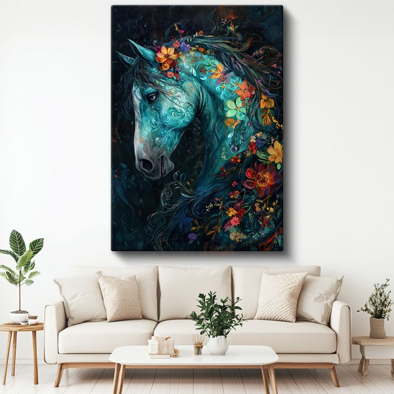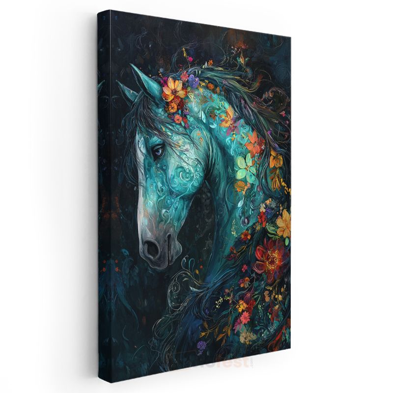 Çiçekli Turkuaz At - Fantastik Düşlerin Büyülü Atı Kanvas Tablo
