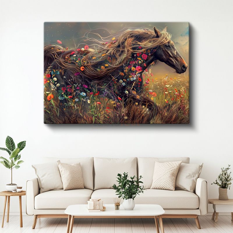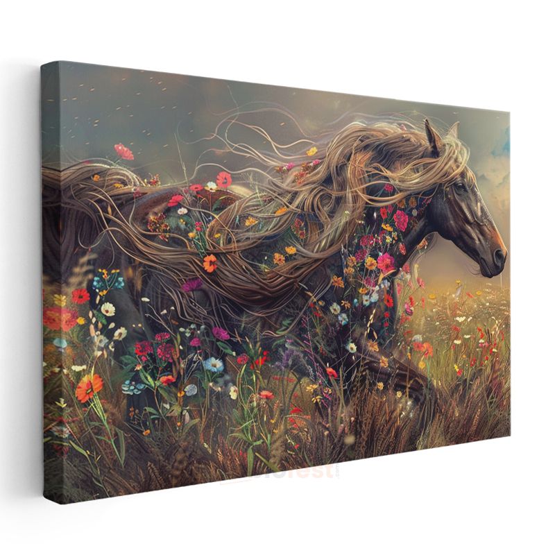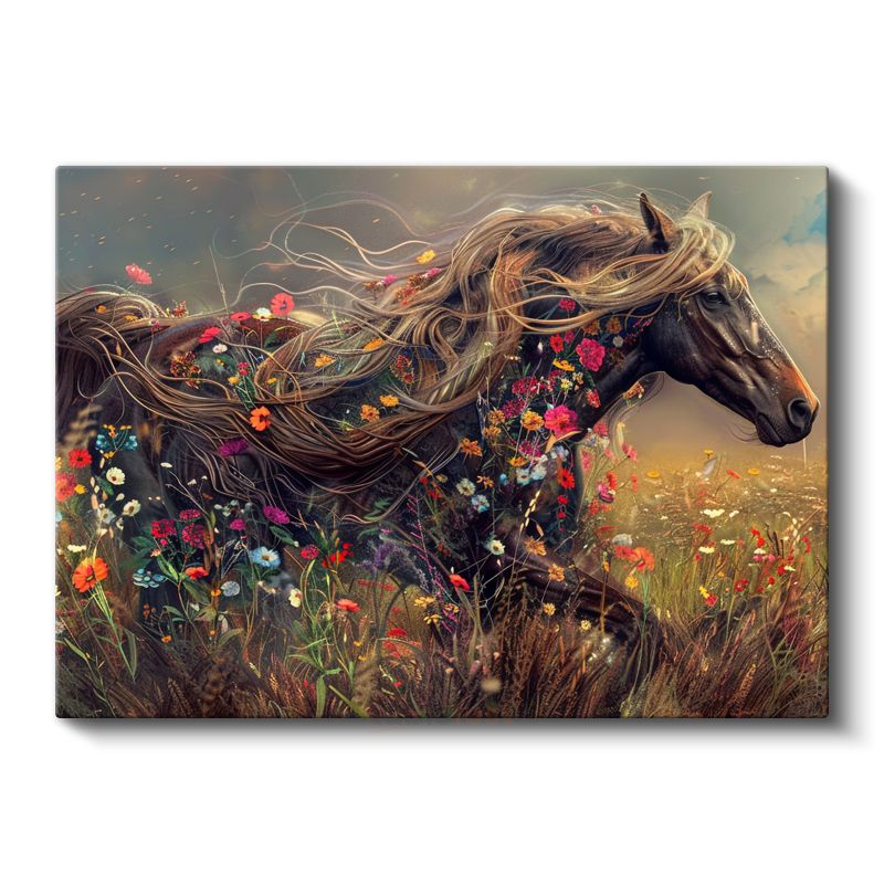Çiçekli Yele - Renkli Kır Çiçekleriyle Süslü At Kanvas Tablo