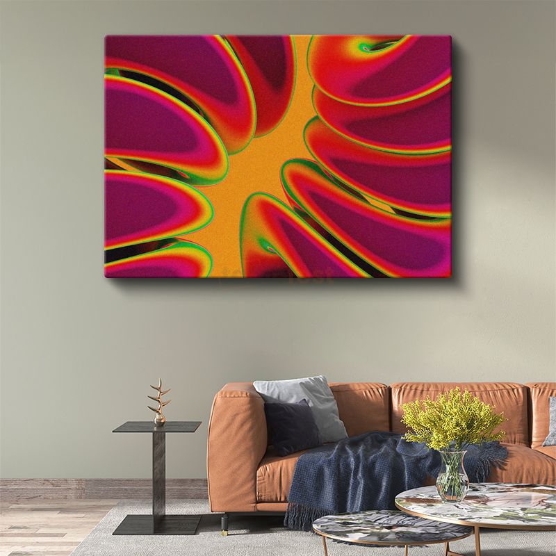 Çiçeksi Dalgalar - Sıcak Tonlarda Soyut Desen Kanvas Tablo
