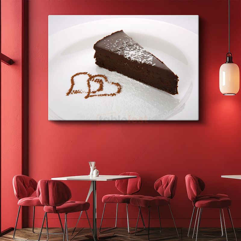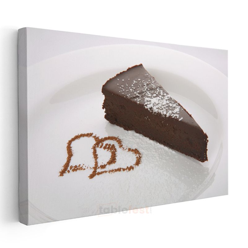 Çikolata Aşkı - Kalp Desenli Kakaolu Tatlı Dilimi Kanvas Tablo