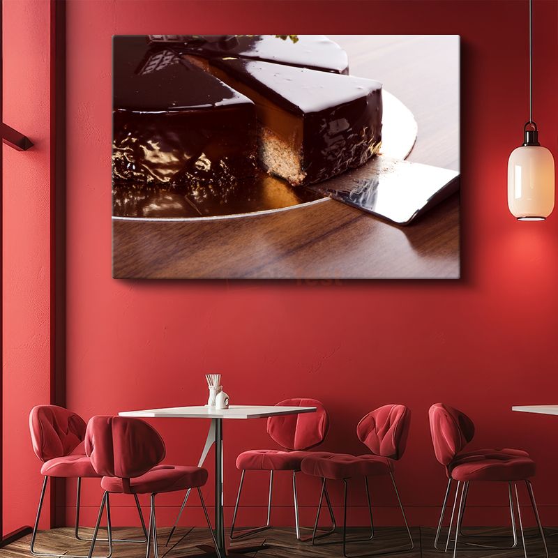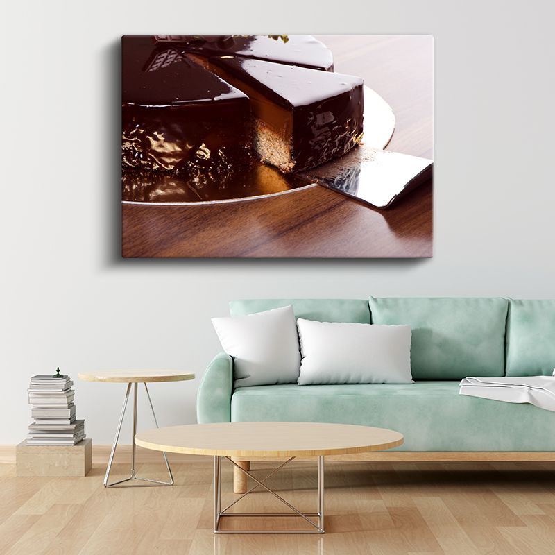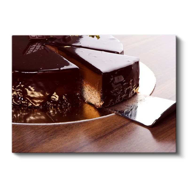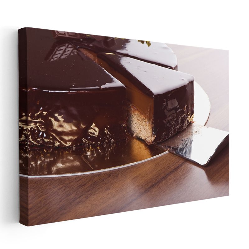 Çikolata Glazürlü Pasta - Parlak Yüzeyli Enfes Dilim Kanvas Tablo