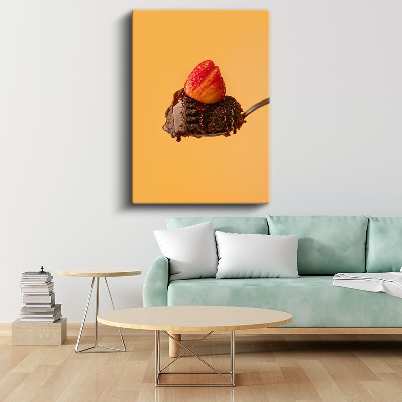 Çikolatalı Brownie - Çilekle Taçlandırılmış Tatlı Ziyafet Kanvas Tablo