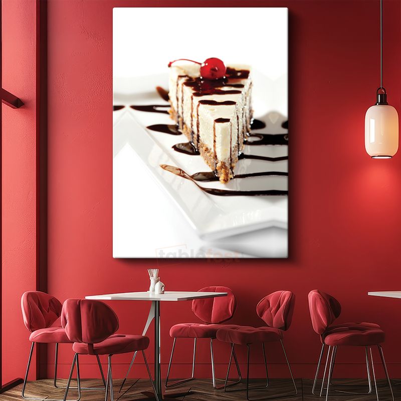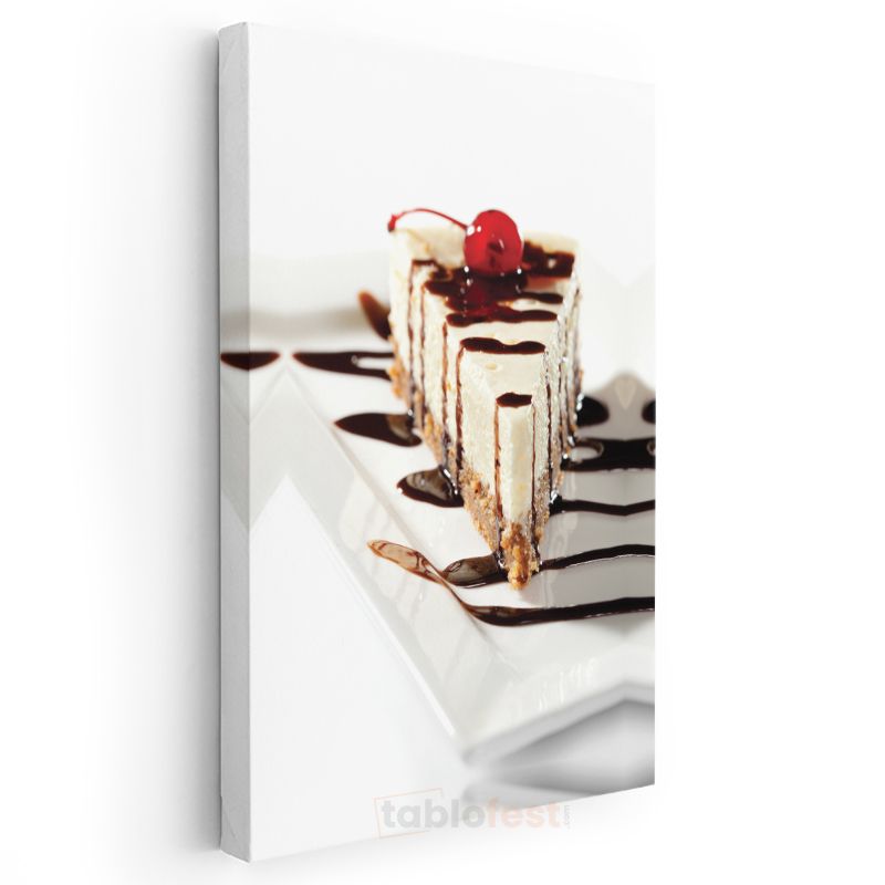Çikolatalı Cheesecake - Kiraz Süslemeli Tatlı Dilimi Kanvas Tablo