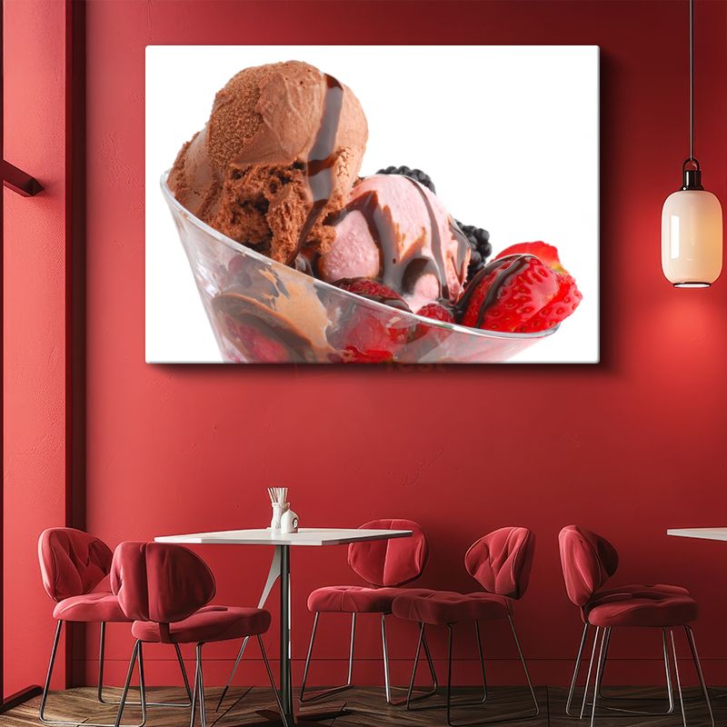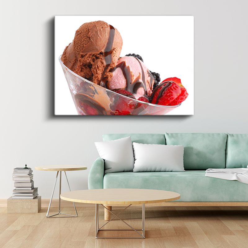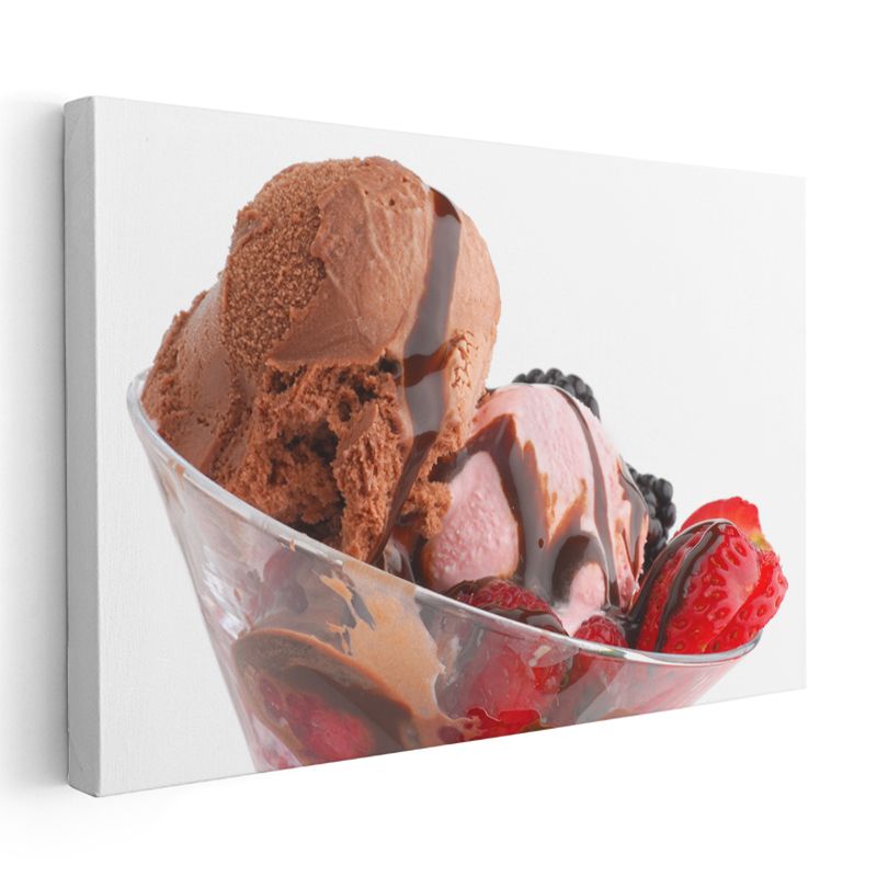 Çikolatalı Dondurma - Meyve Parçacıklı Cam Kasede Sunum Kanvas Tablo