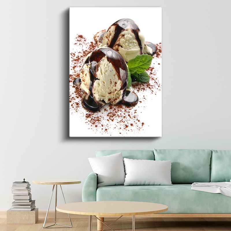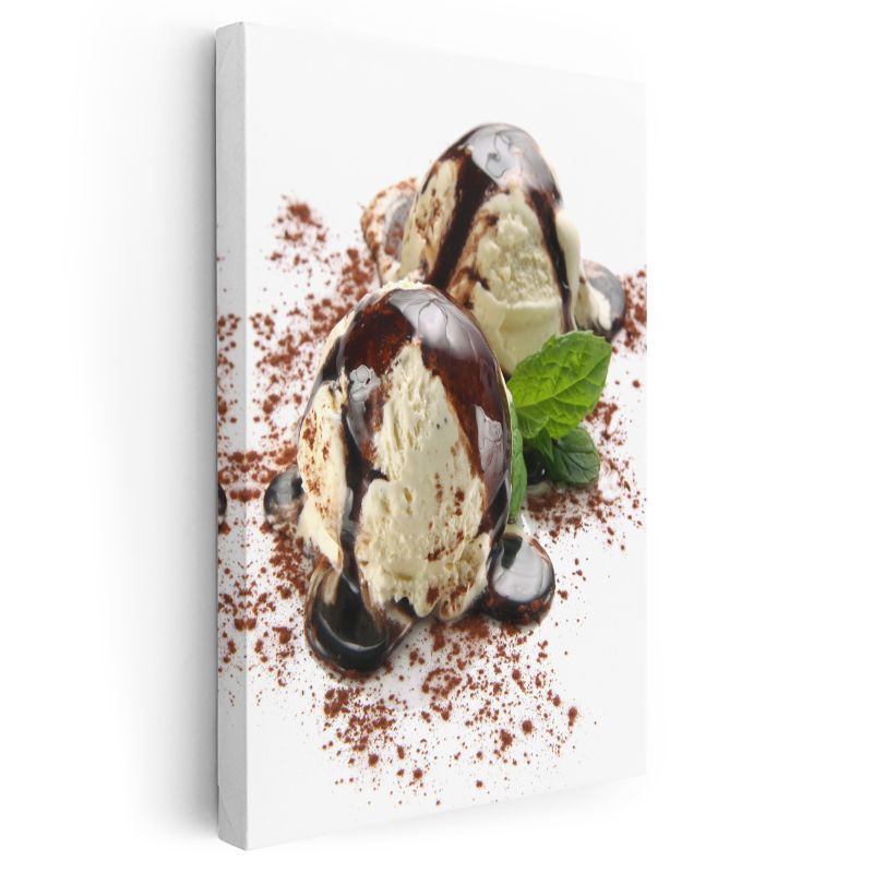 Çikolatalı Dondurma - Nefis Sos ve Nane Yapraklarıyla Sunulan Kanvas Tablo