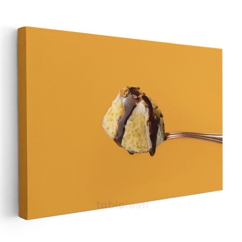 Çikolatalı Kek - Kaşık Üzerinde Tatlı Anı Kanvas Tablo