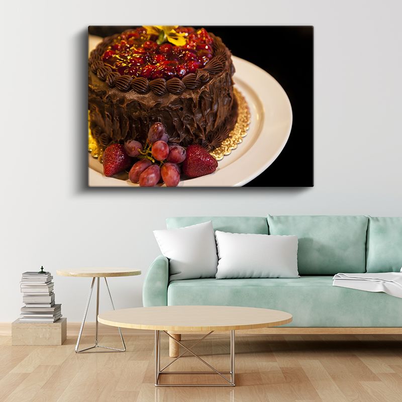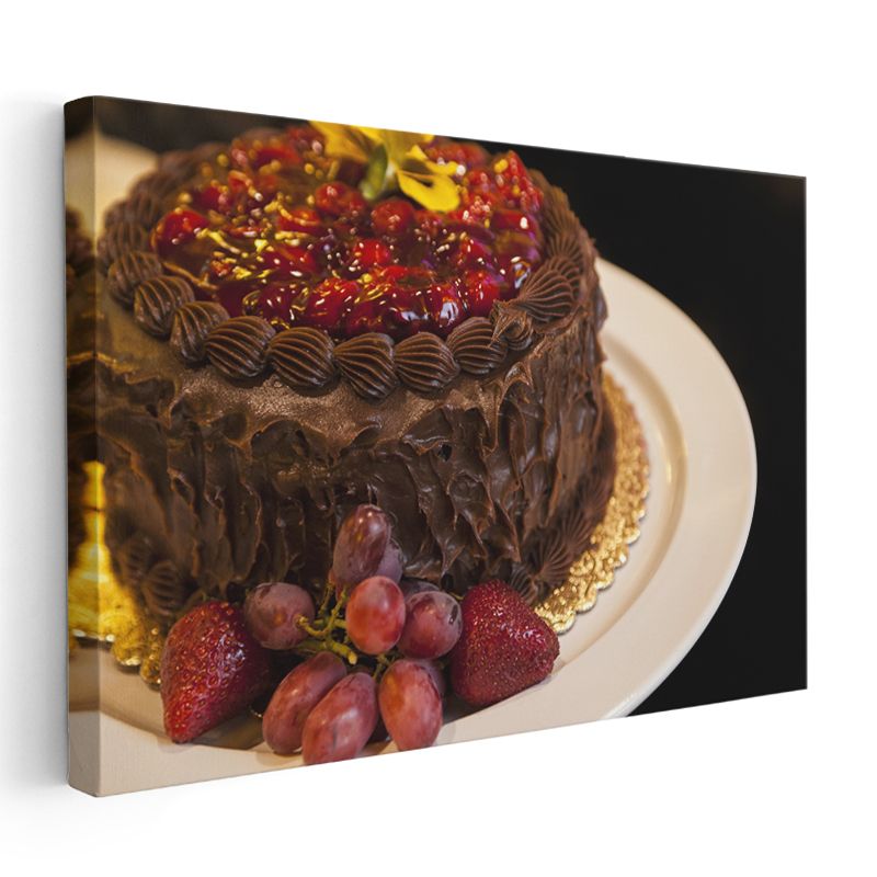 Çikolatalı Meyve Pastası - Taze Meyvelerle Süslenmiş Lezzet Kanvas Tablo