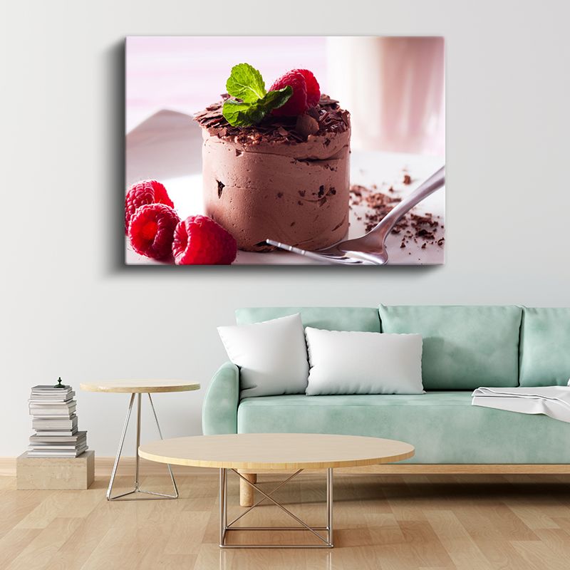 Çikolatalı Mousse - Ahududu ve Nane Yapraklı Tatlı Kanvas Tablo