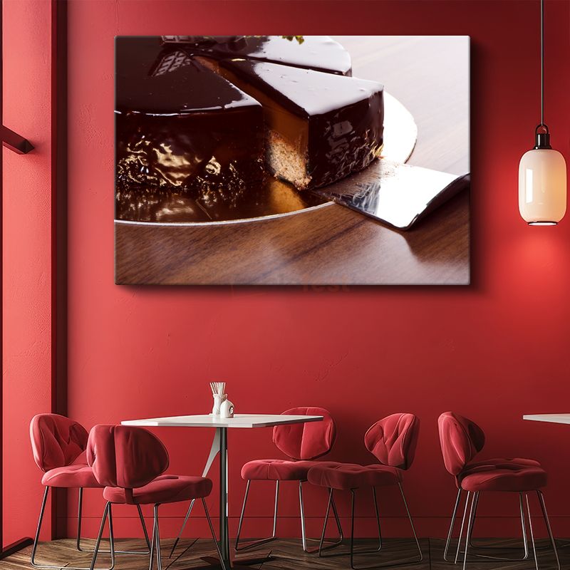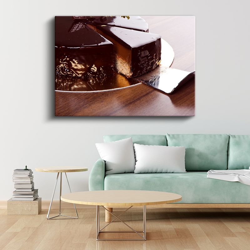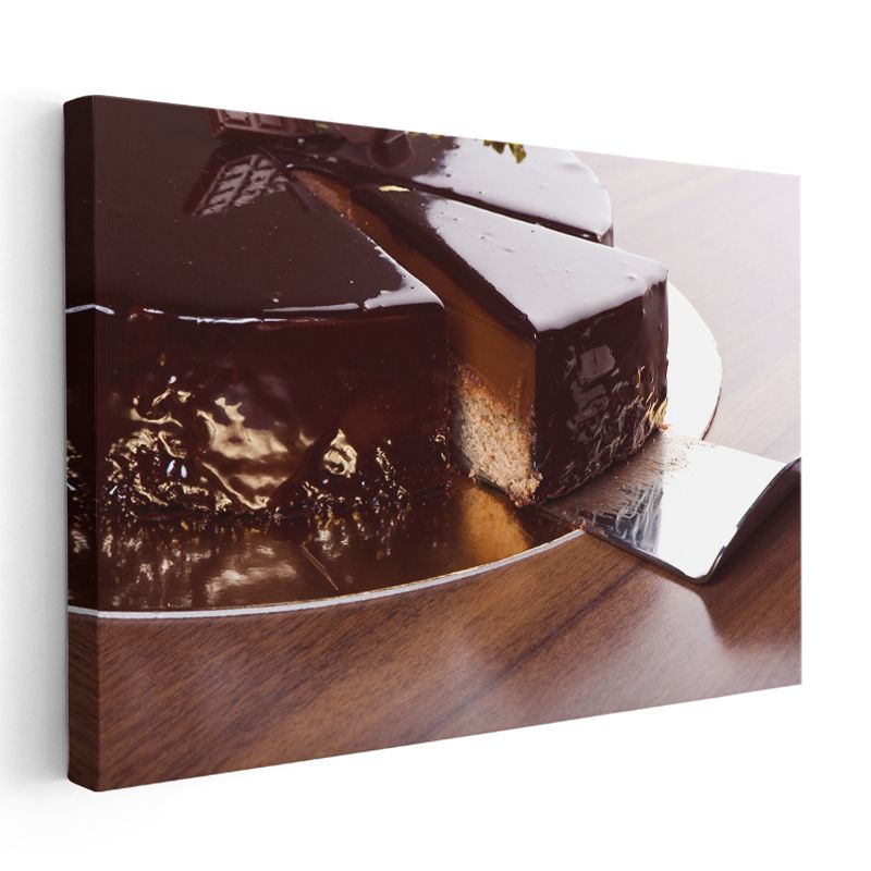 Çikolatalı Pasta Dilimi - Parlak Ganaj Soslu Lezzet Kanvas Tablo