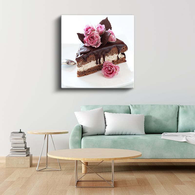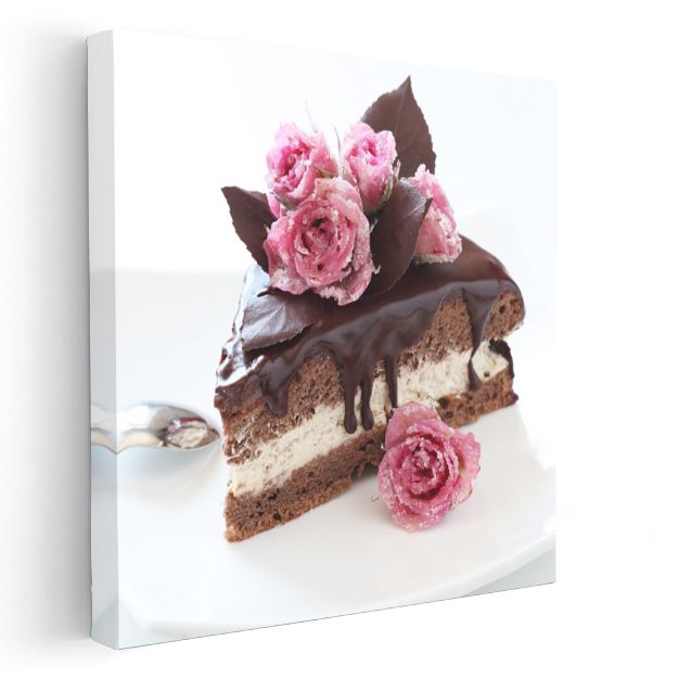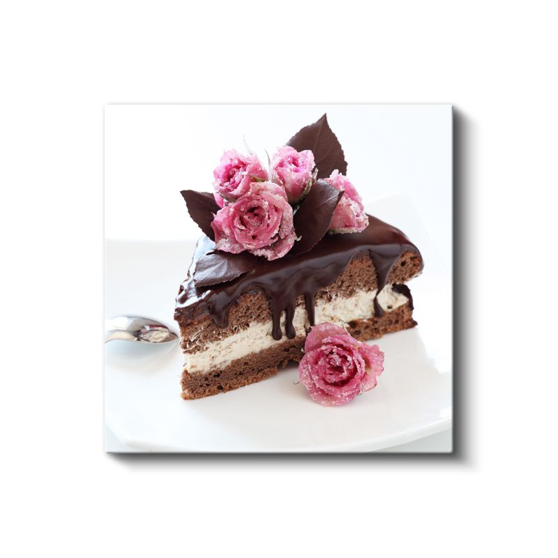Çikolatalı Pasta - Gül Süslemeli Lezzet Kanvas Tablo
