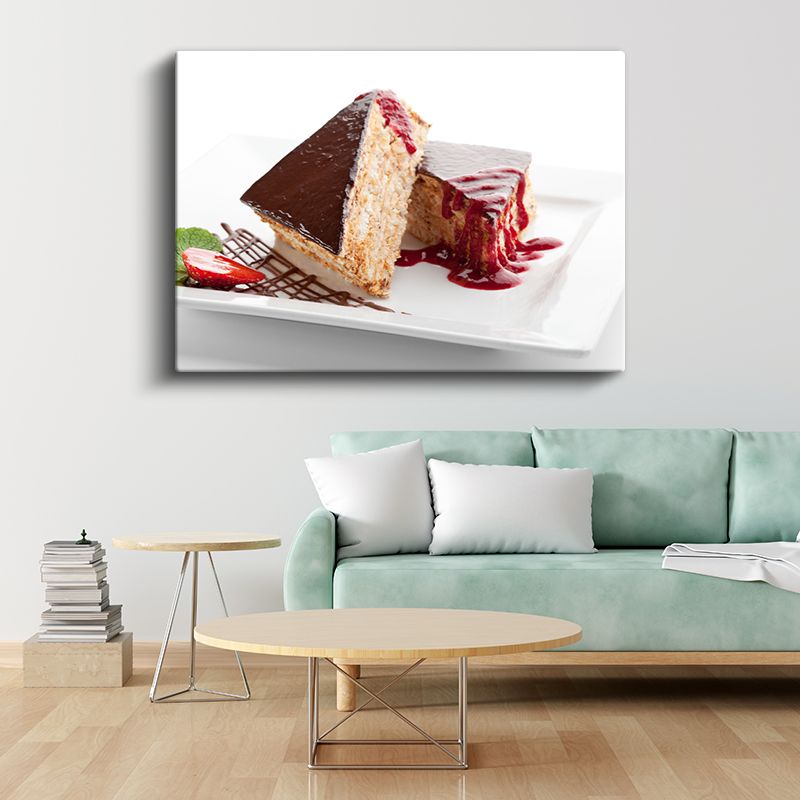 Çikolatalı Pasta - Meyve Soslu Dilim Kanvas Tablo