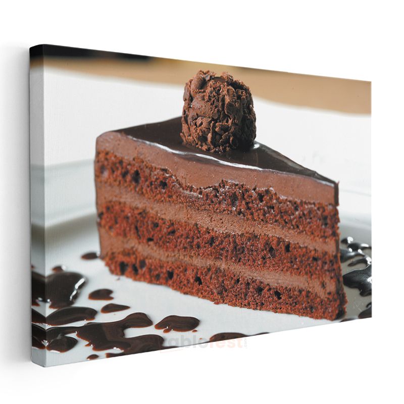 Çikolatalı Pasta - Trüf Toplu Katmanlı Lezzet Kanvas Tablo