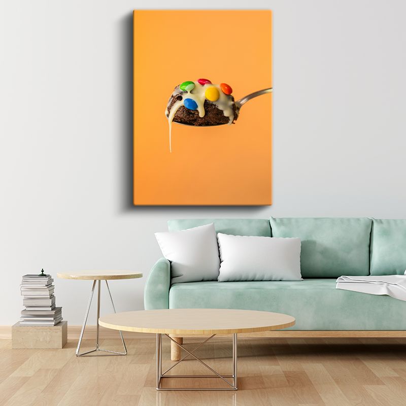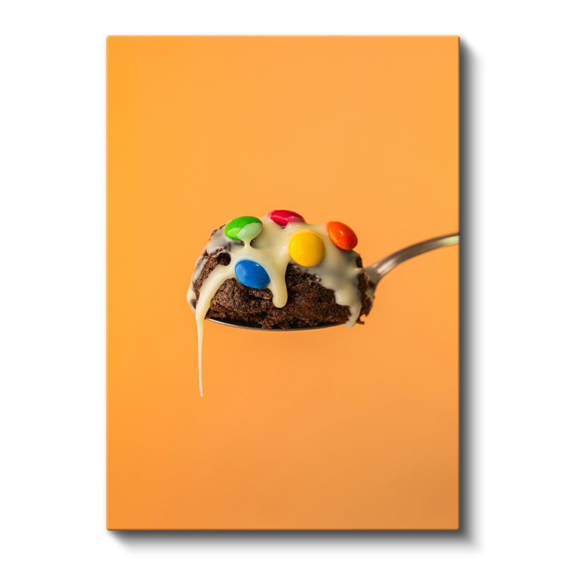Çikolatalı Tatlı - Renkli Şekerlemelerle Süslenmiş Kaşık Kanvas Tablo