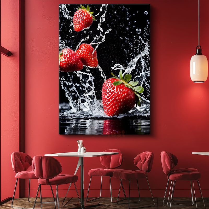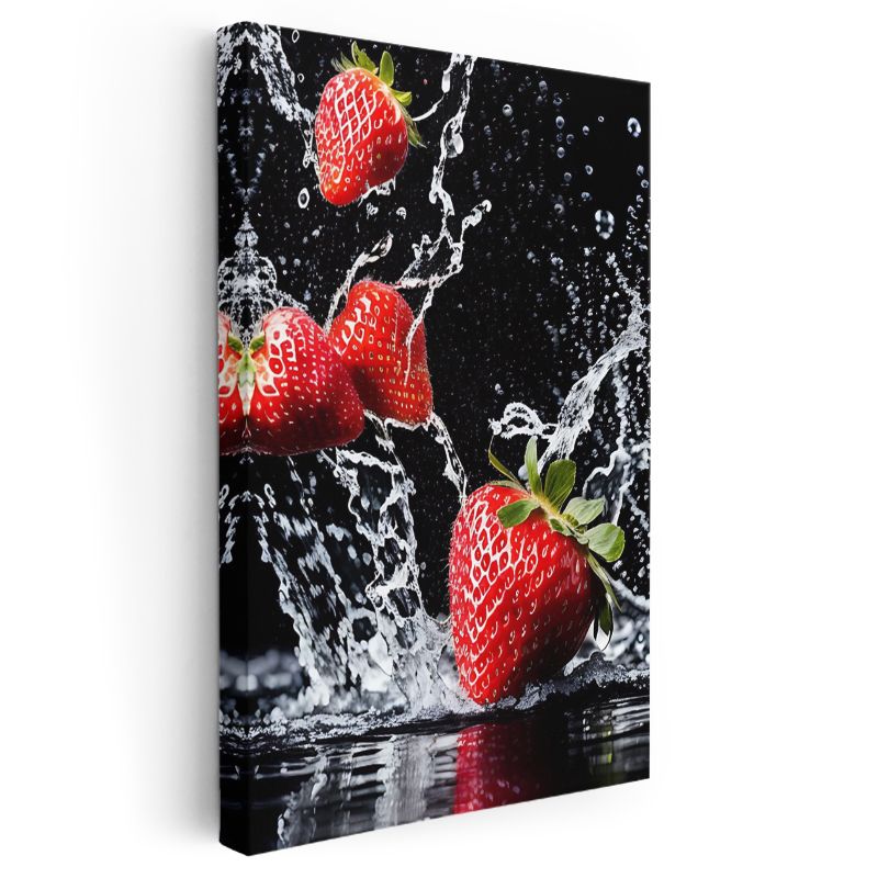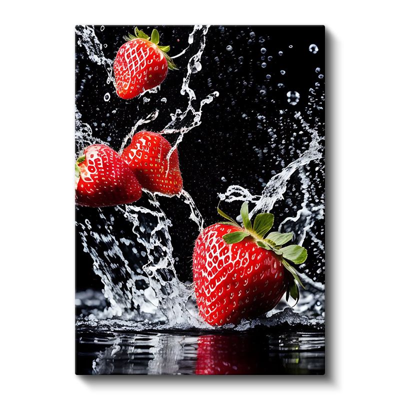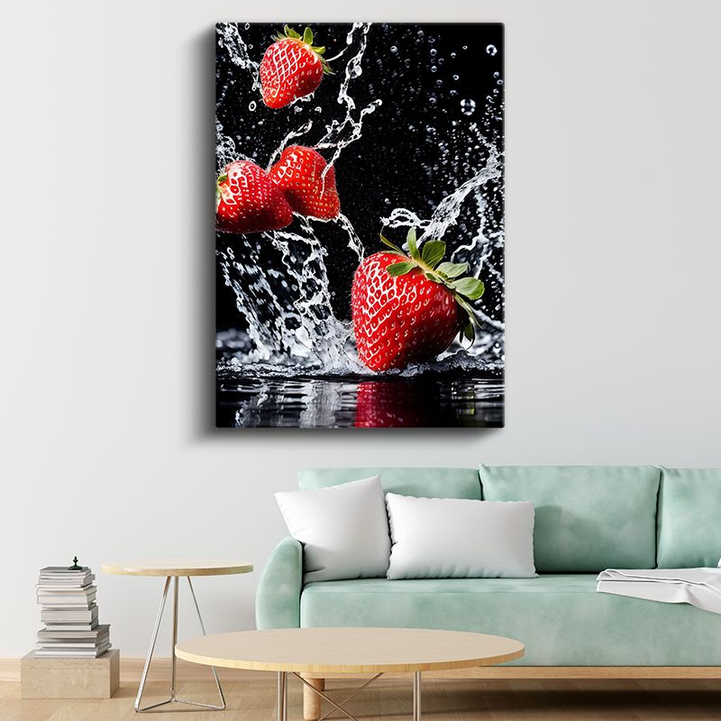 Çilek Sıçraması - Sulu Taze Meyveler Kanvas Tablo