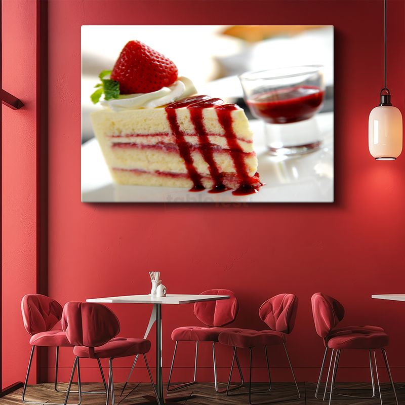 Çilekli Dilim - Kırmızı Soslu Tatlı Kanvas Tablo