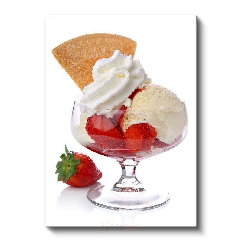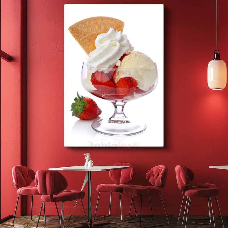 Çilekli Dondurma Keyfi - Taze Meyveli Tatlı Ziyafeti Kanvas Tablo