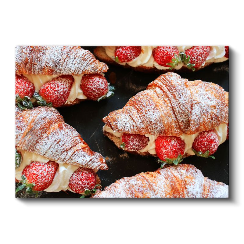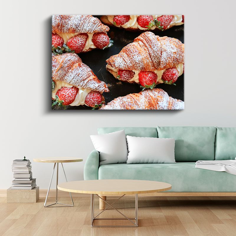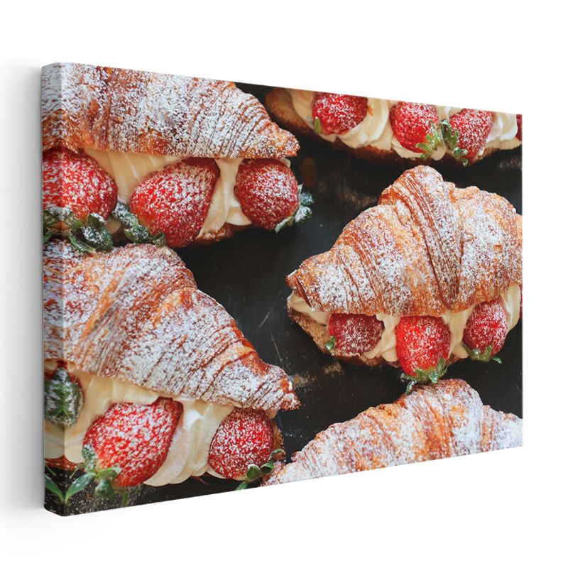 Çilekli Kruvasan - Pudra Şekerli Tatlı Lezzet Kanvas Tablo