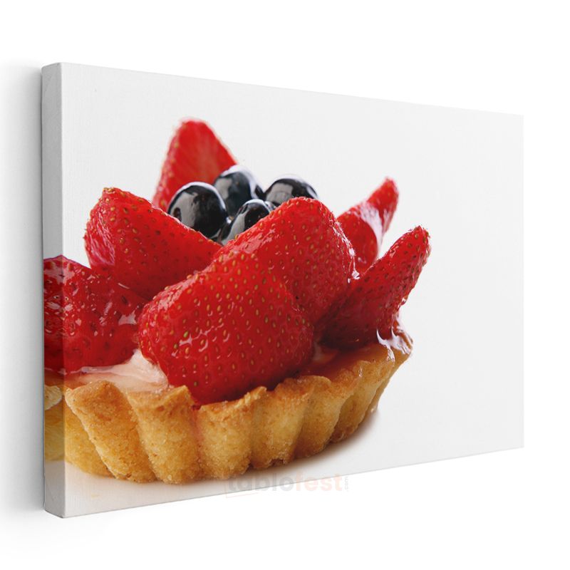 Çilekli Tart - Taze Meyvelerle Bezeli Mini Tatlı Kanvas Tablo