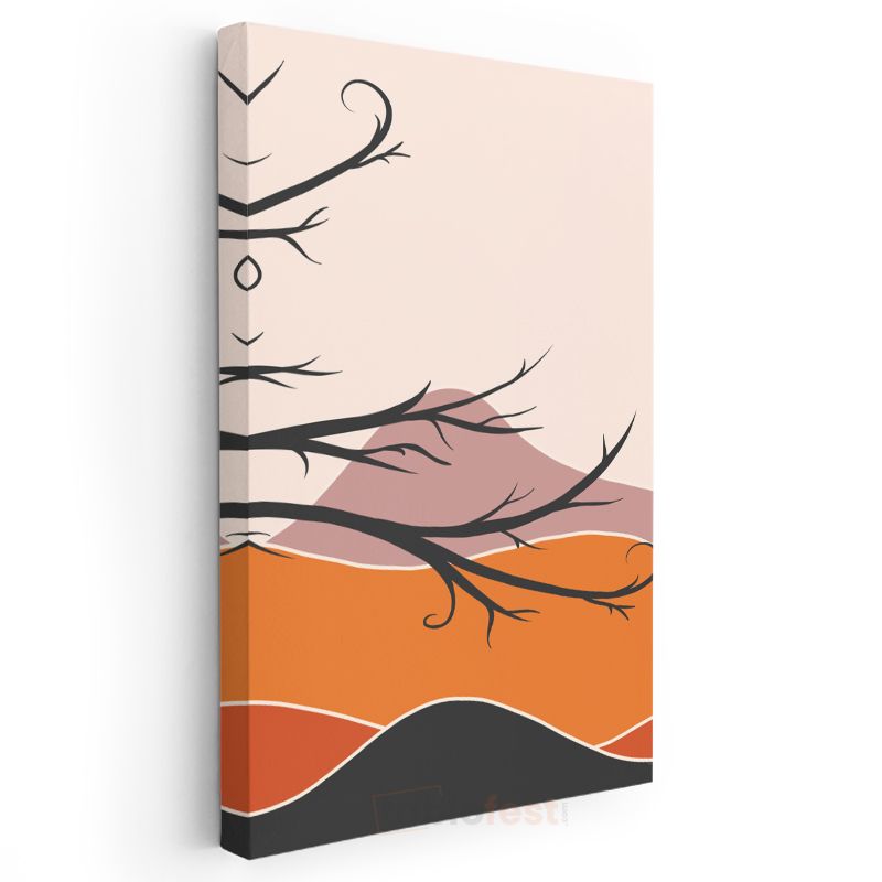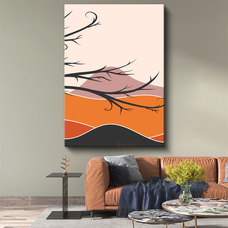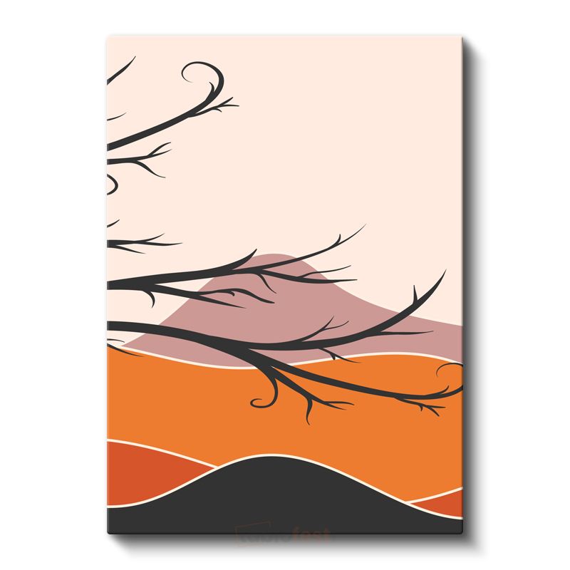 Çıplak Dallar - Turuncu Dalgalarla Soyut Doğa Kompozisyonu Kanvas Tablo