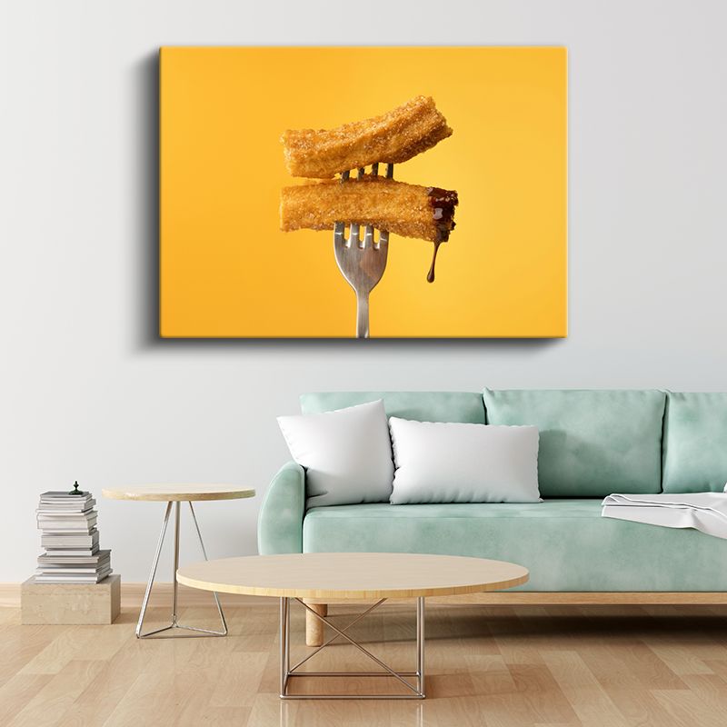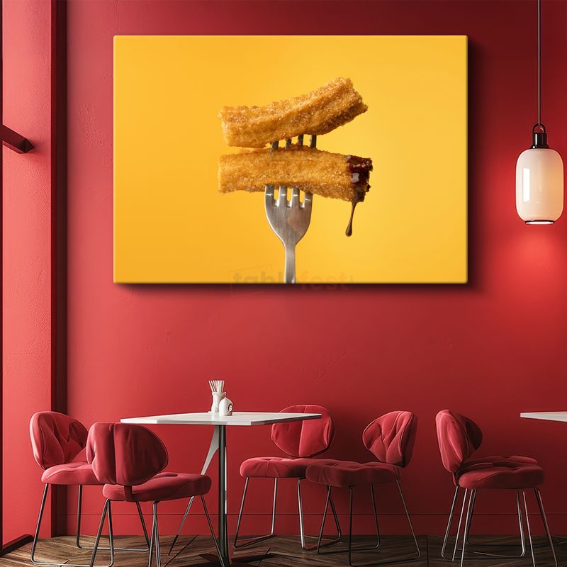 Çıtır Tatlı Çubukları - Çatal Üzerinde Akışkan Çikolata Kanvas Tablo