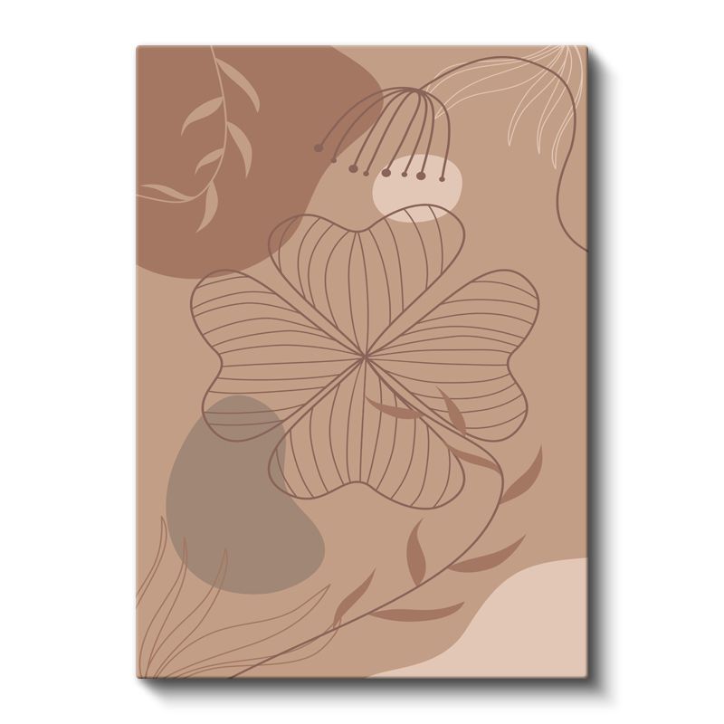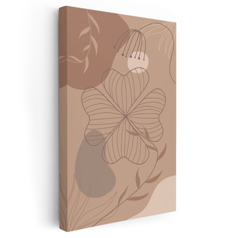 Çizgisel Botanik - Bej Tonları Minimalist Çiçek Kanvas Tablo
