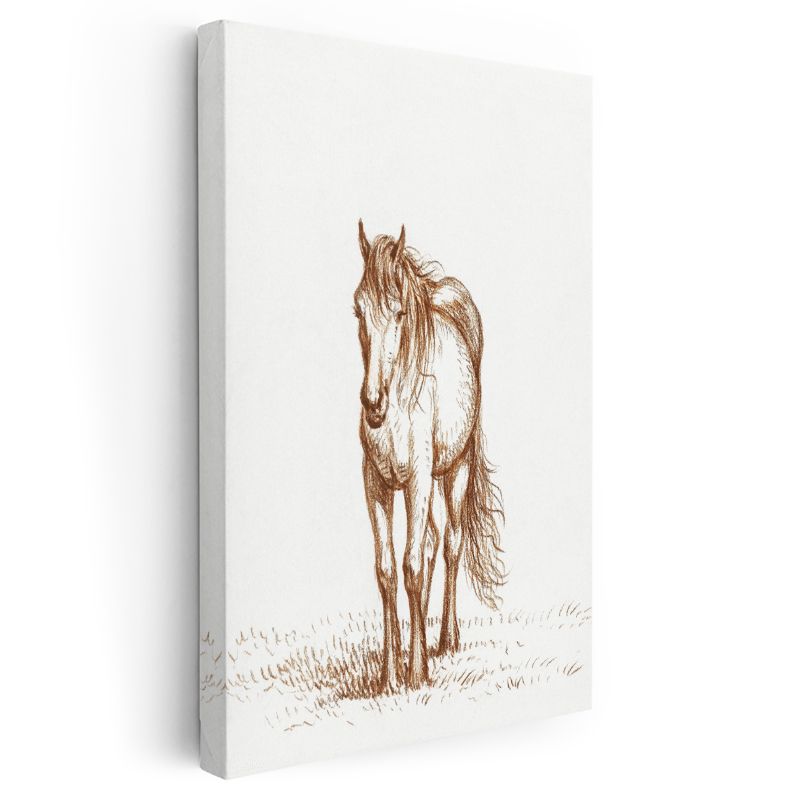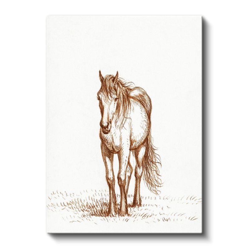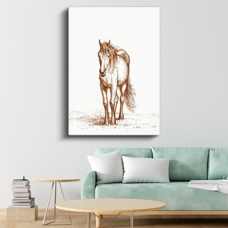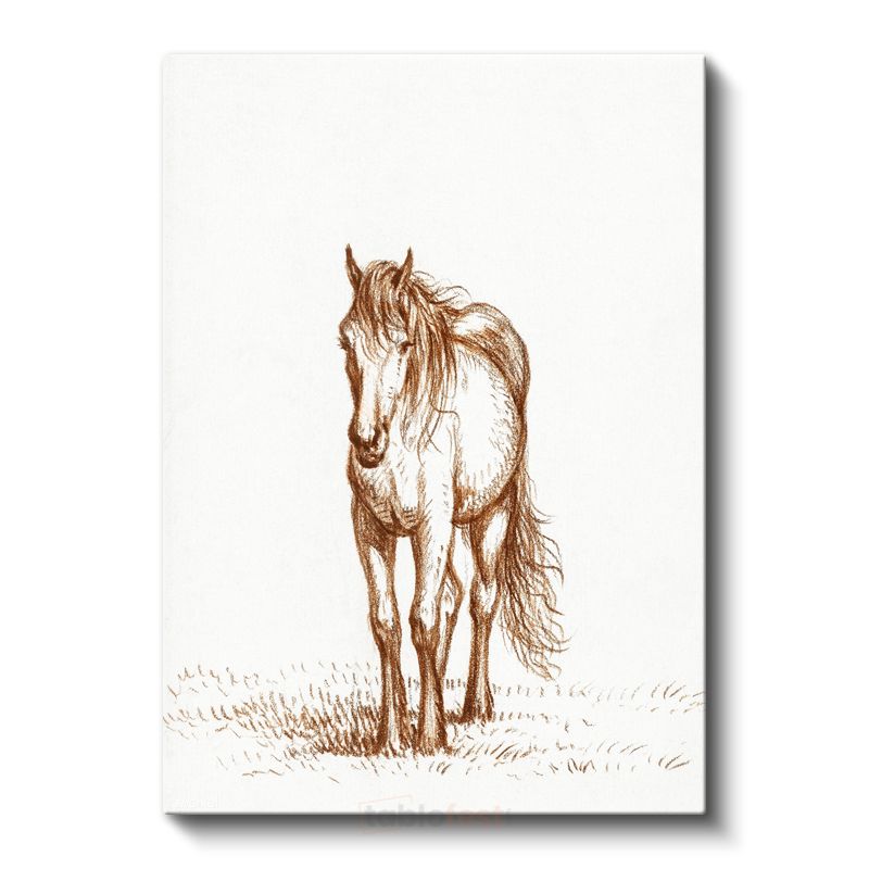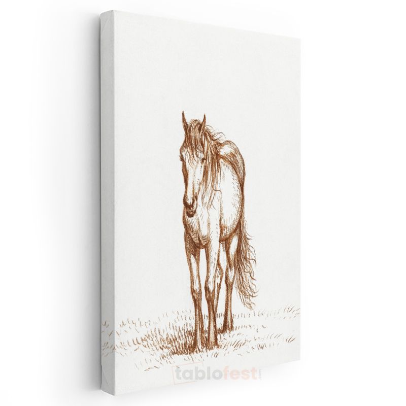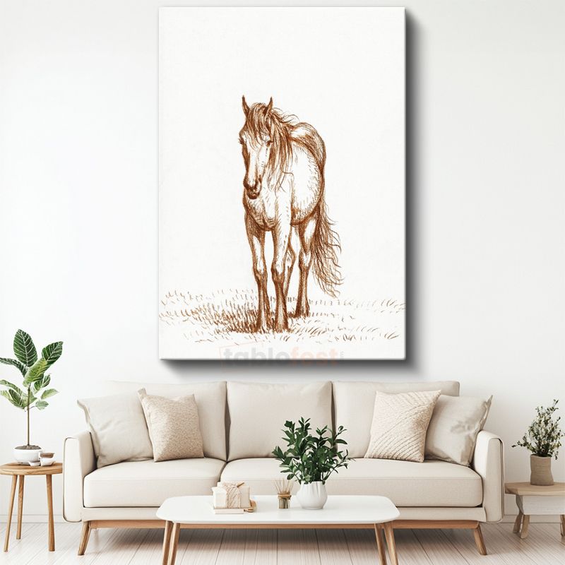 Çizim At - Çayırda Duran Özgür Ruh Kanvas Tablo