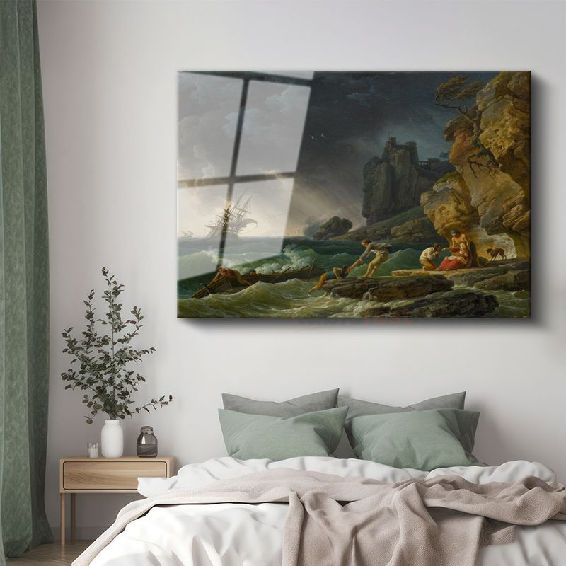 Claude Joseph Vernet - Fırtınada Kurtarma Sahnesi Cam Tablo